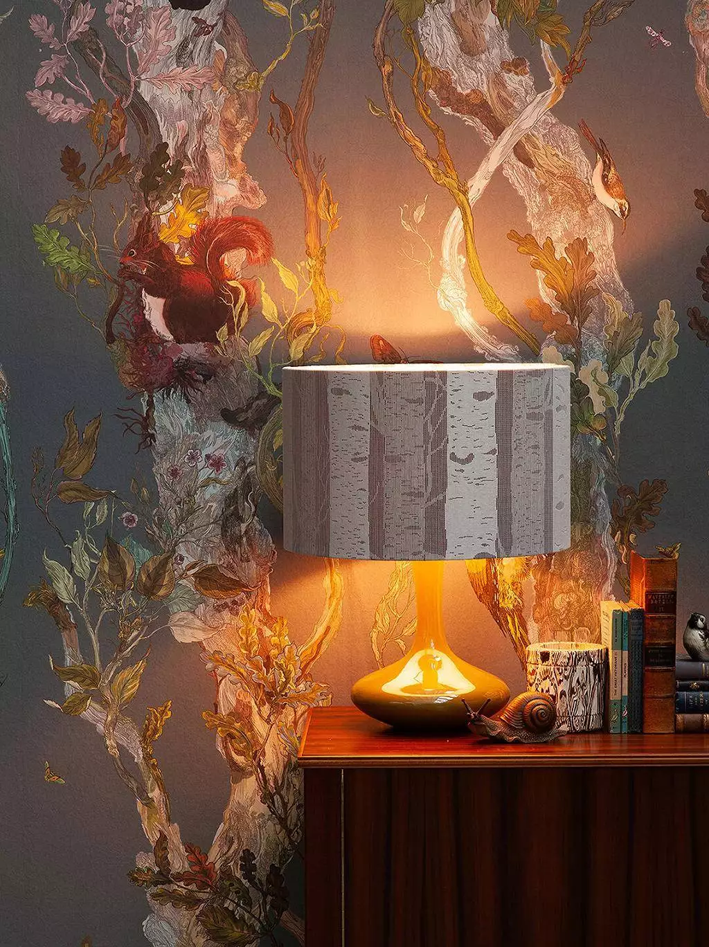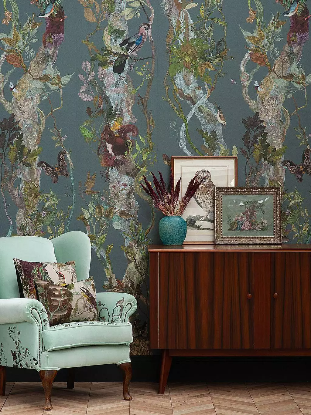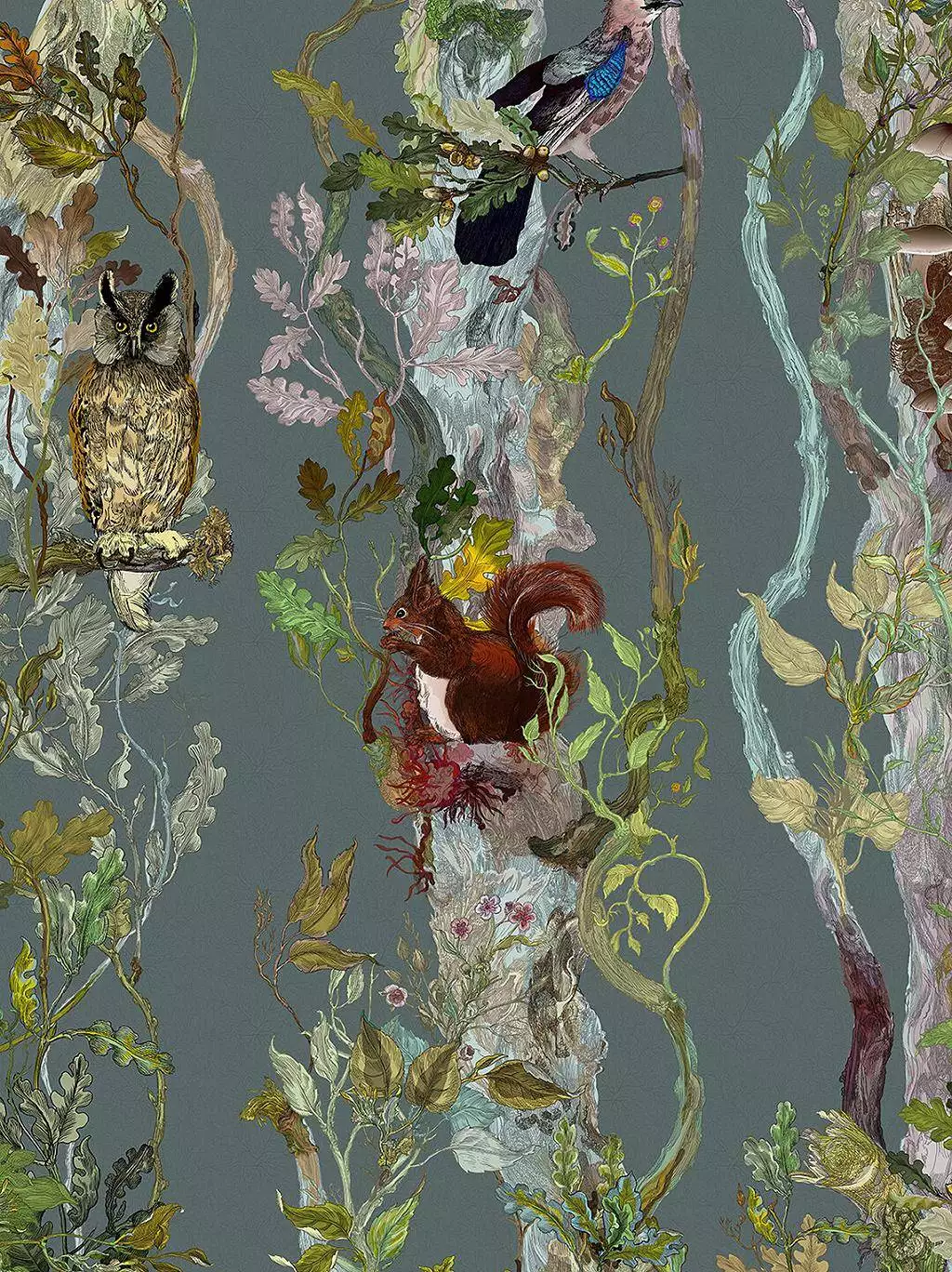 Die kräftigen Farben und detaillierten Illustrationen machen diese Tapete zu einem ausdrucksstarken Designelement, das jedem Raum Charakter verleiht. Ideal für Innenarchitekten, die nach einer kraftvollen und einzigartigen Akzentwand suchen, verbindet die Indie Wood Wallpaper traditionelle Motive mit einer modernen Interpretation. Sie ist perfekt geeignet für großflächige Anwendungen in Wohn- und Geschäftsräumen und schafft eine unverwechselbare visuelle Präsenz, die das Thema Natur auf eine neue, künstlerische Ebene hebt.