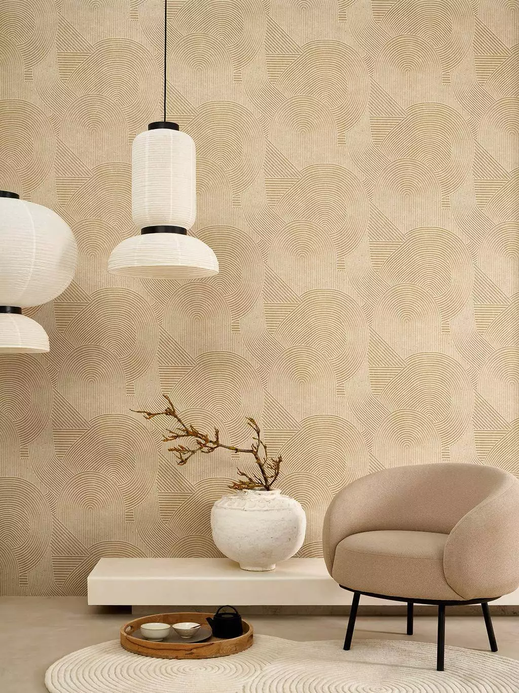 Ein modernes Relief aus geschwungenen Linien in warmem Beigeton. Jardin des Pierres wirkt natürlich und strukturiert – ruhig, aber mit klarer grafischer Aussage.
