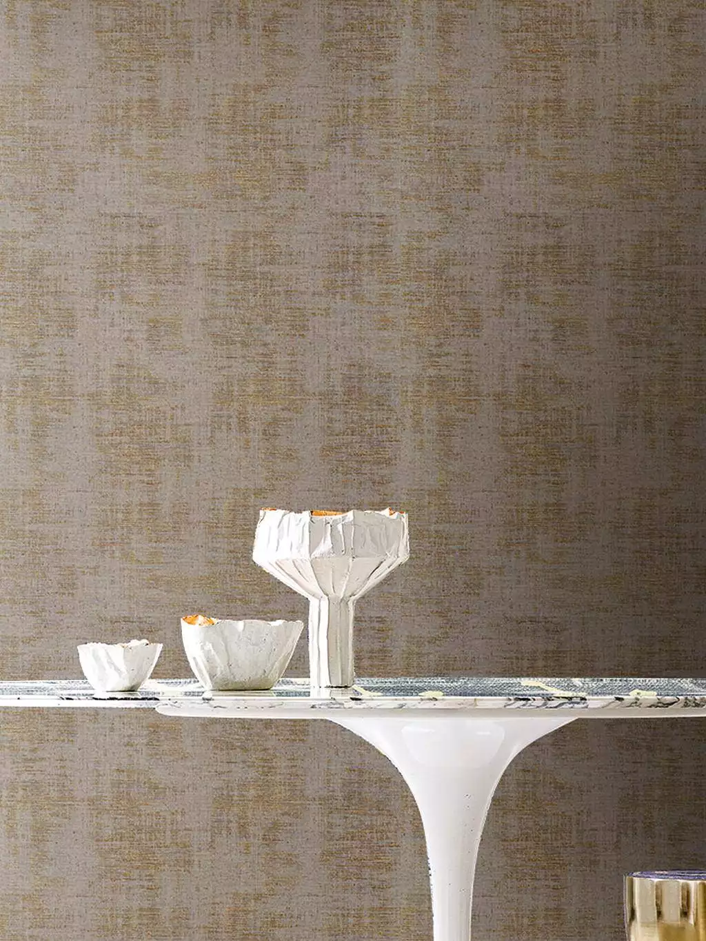 Die Tapete "Johara" zaubert eine täuschend echte Illusion von einer feinen Stofftextur hervor, die auf die Wand gespannt ist. Sie ist zeitlos, elegant und lässt sich perfekt mit einem modernen und minimalistischen Einrichtungsstil kombinieren. Diese Farbvariante nennt sich "Rouille", zeigt ein gräulichen Braun und passt gut zu Weißen Möbeln.
