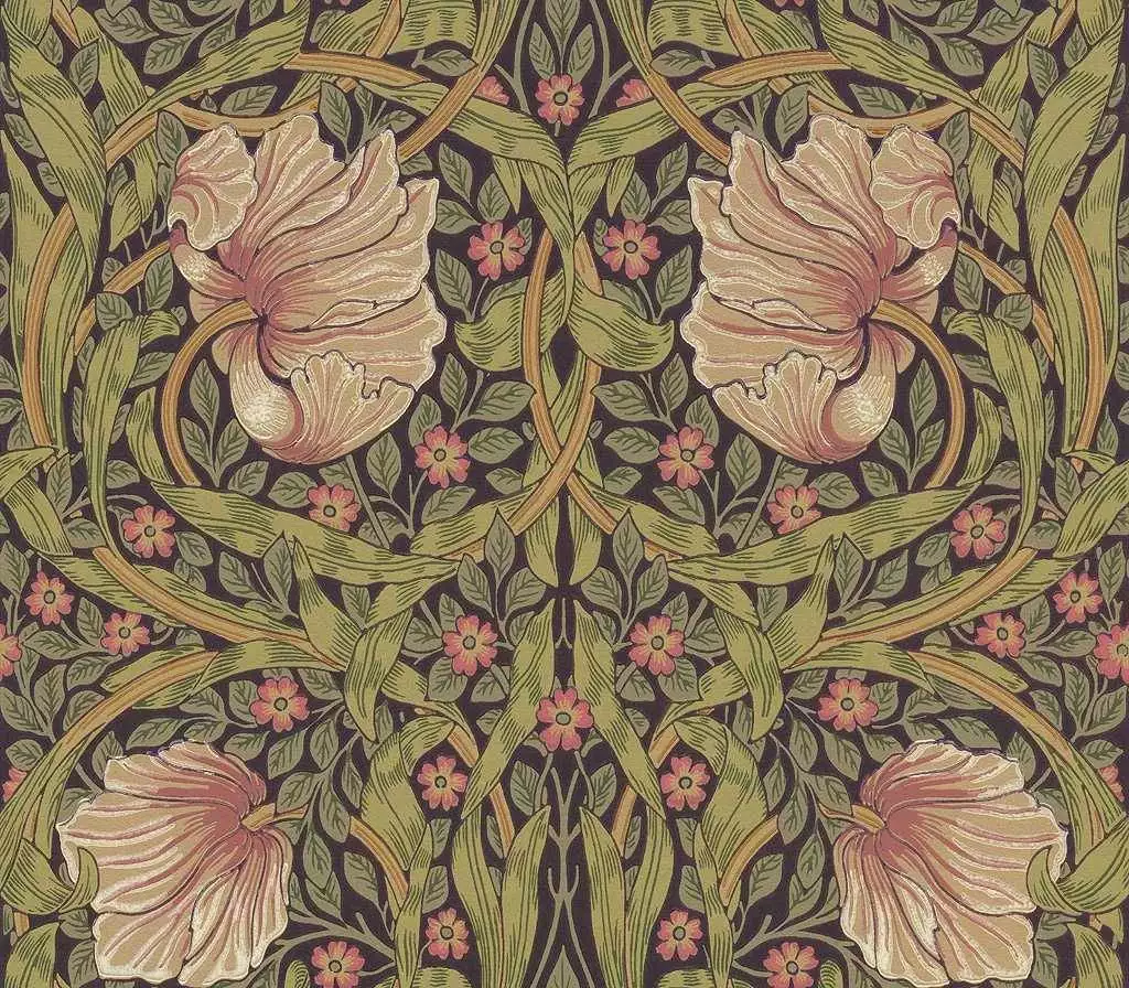 Diese Tapete ist ein Klassiker von William Morris! Die Spiegelsymmetrie ist ein zentrales Element seiner Designprinzipien. Das Muster stammt aus dem Jahr 1876 und zeichnet sich durch ein florales Muster mit geschwungene Stängel & großen Blüten aus.
