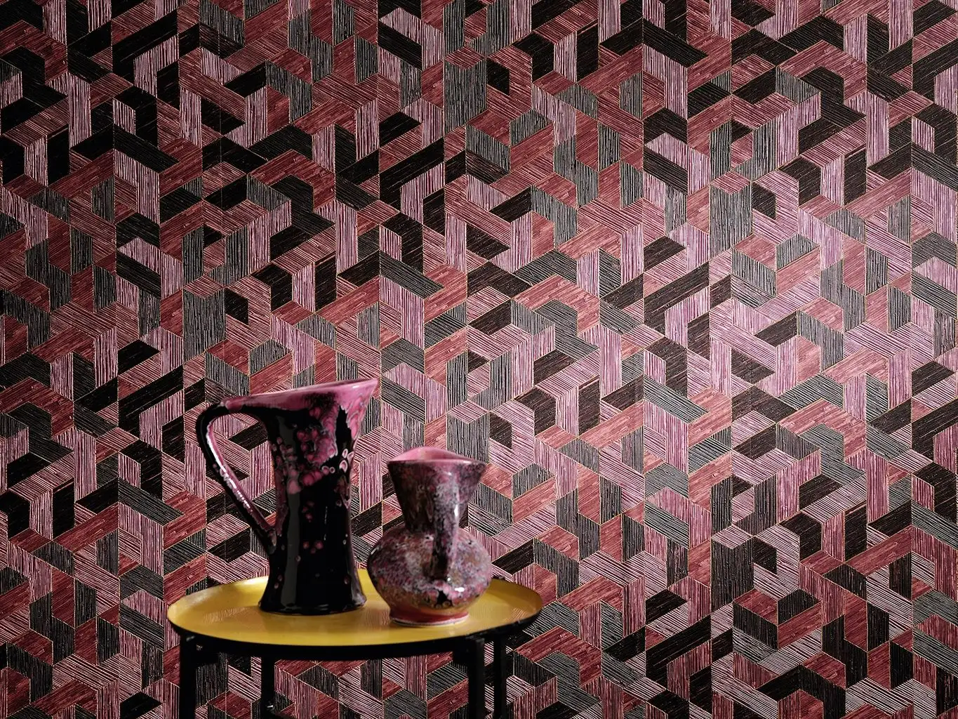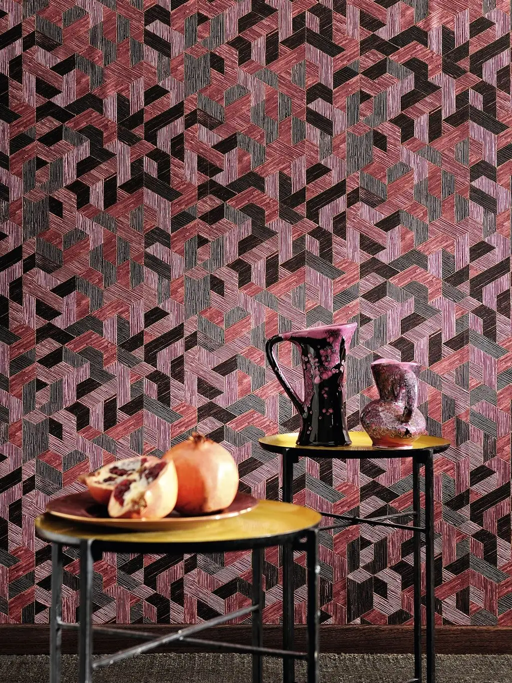 • Großformatige Muster, warme Farben und dezente Metallic-Effekte, die Tiefe und Eleganz schaffen