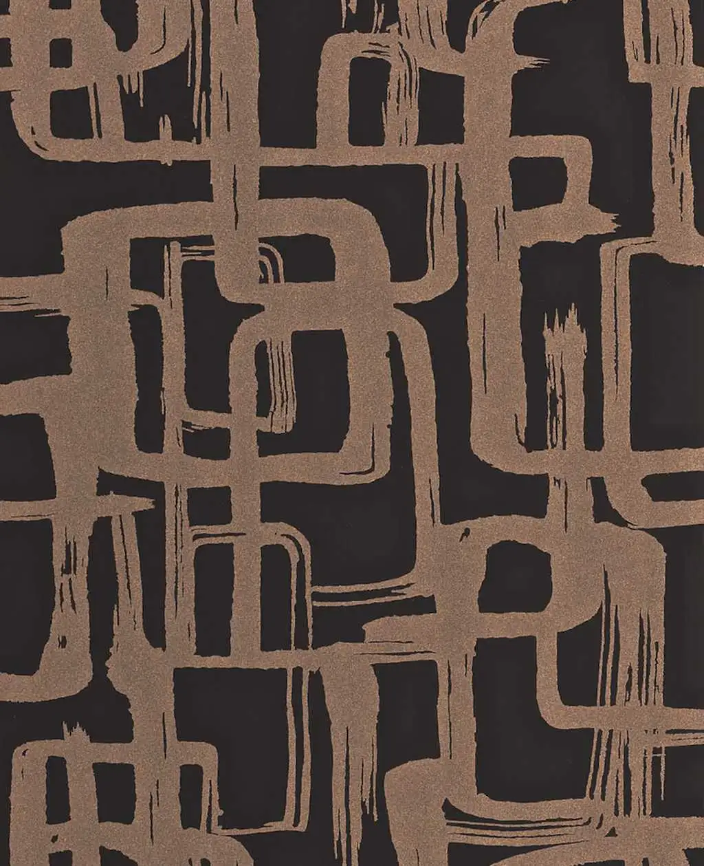 Dank der goldenen Metallicfarbe und den geschwungenen, verflochtenen Formen fallen die Muster sofort ins Auge. Die Kahil Tapete steht für einen eleganten und modernen Kunstgeschmack.