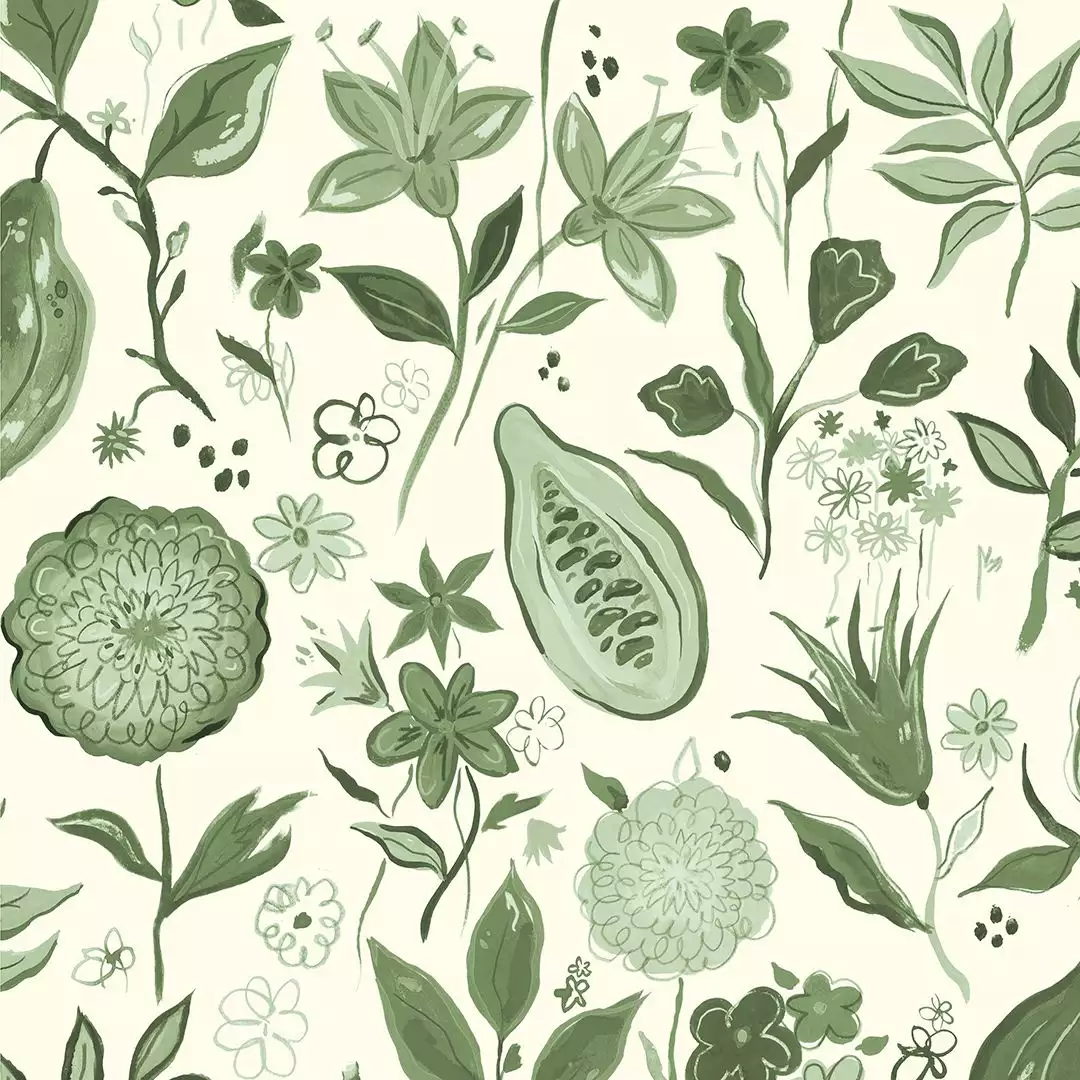 Die Kakao Acai-Blau Tapete ist eine Hommage an die köstliche Schokolade und wurde während einer inspirierenden Reise nach Costa Rica kreiert. Das 'Kakao'-Design zeigt die ikonischen Früchte des Theobroma-Kakaobaums, wobei die schotenartigen Formen die Kakaobohnen darstellen. Das kindlich-naive Design verkörpert die Freude und Nostalgie, die Schokolade auslöst. Die Kakao-Farben wurden nach Geschmacksrichtungen benannt, die gut zu Schokolade passen. Und Matcha ist sicherlich eine davon, vor allem in Kombination mit weißer Schokolade.