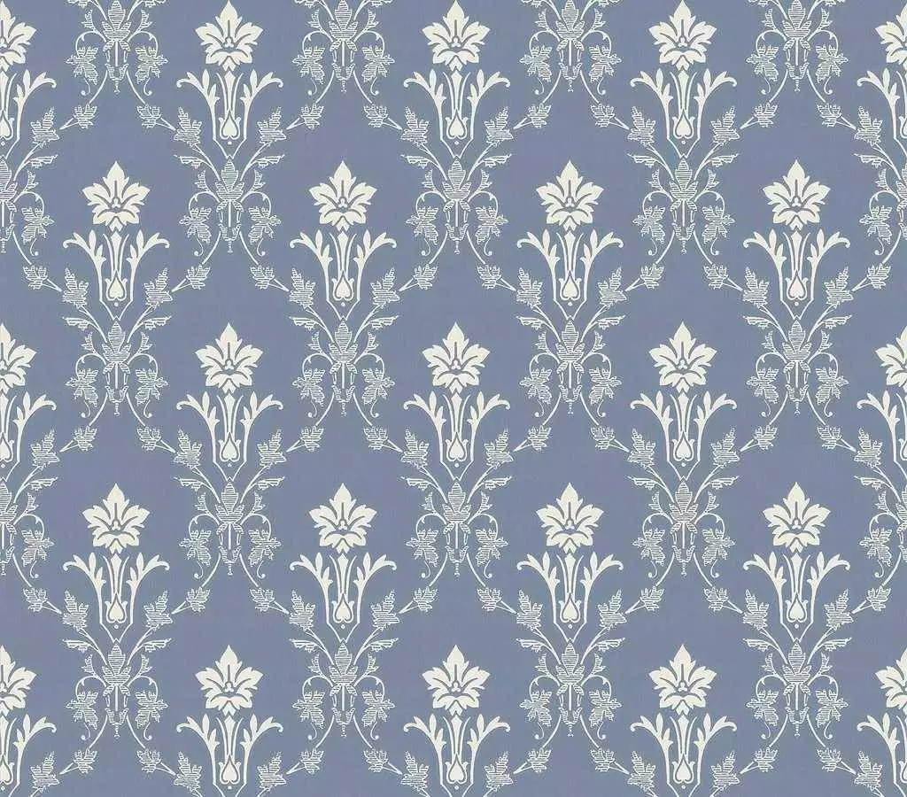 Die Tapete Kent formt typische Jugendstil-Elemente in ein ruhiges, dekoratives Ornament: florale Linien, symmetrisch, klar geführt. Auf dem rauchigen Blauton wirkt das cremefarbene Motiv leicht und strukturiert zugleich. Eine Tapete, die traditionelle Musterkultur bewahrt und Räumen dabei eine wohnlich elegante Präsenz gibt.