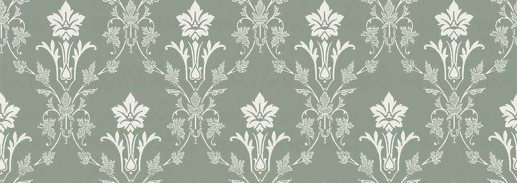 Die Tapete Kent verbindet die ornamentale Klarheit des Jugendstil mit der Leichtigkeit des Landhausstils. Die weißen floralen Motive stehen präzise vor dem grünen Grund und entfalten eine warme, grafisch geführte Eleganz. Die regelmäßige Anordnung wirkt geordnet, aber freundlich. Ihr gelingt hier ein feines Zusammenspiel aus Naturmotiv und dekorativer Struktur, das Räumen Warme und eine Prise historischen Glanz verleiht.