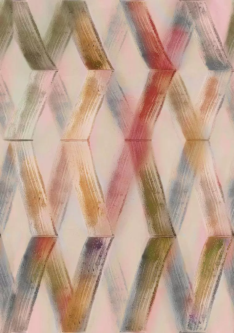 Krosselight bringt Bewegung in die Fläche. Das Mailänder Designduo Draga&Aurel entwickelt ein prismatisches Rautenmuster, dessen changierender Farbverlauf an geschliffenes Kristall oder gefaltetes Licht erinnert. Warme Pastelltöne wechseln sich mit kühlen Nuancen ab — das Ergebnis ist eine Tapete von hoher dekorativer Energie, die Räumen Tiefe und Leuchtkraft gibt. Krosselight eignet sich ebenso für exklusive Wohnprojekte wie für den Contract-Bereich. Tapetenagentur.de berät Sie als Wall&decò Partner für den deutschen Markt bei der Planung.