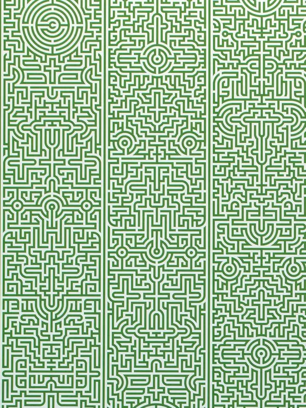 Mit der Designtapete Labyrinth wird Wand zum Weg: Streng geometrische Pfade in frischem Grün auf weißem Grund ziehen sich über die Fläche – ruhig geordnet, klar strukturiert. So verbindet die Tapete Moderne mit Klarheit und bringt Tiefe und grafischen Rhythmus in den Raum. Ideal, wenn Ihr Interieur reduzierte Linie lebt und gleichzeitig ein wirkungsvolles Highlight braucht. Das Design „Labyrinth“ wurde ursprünglich für die Polsterung eines MOOOI-Stuhls entworfen.