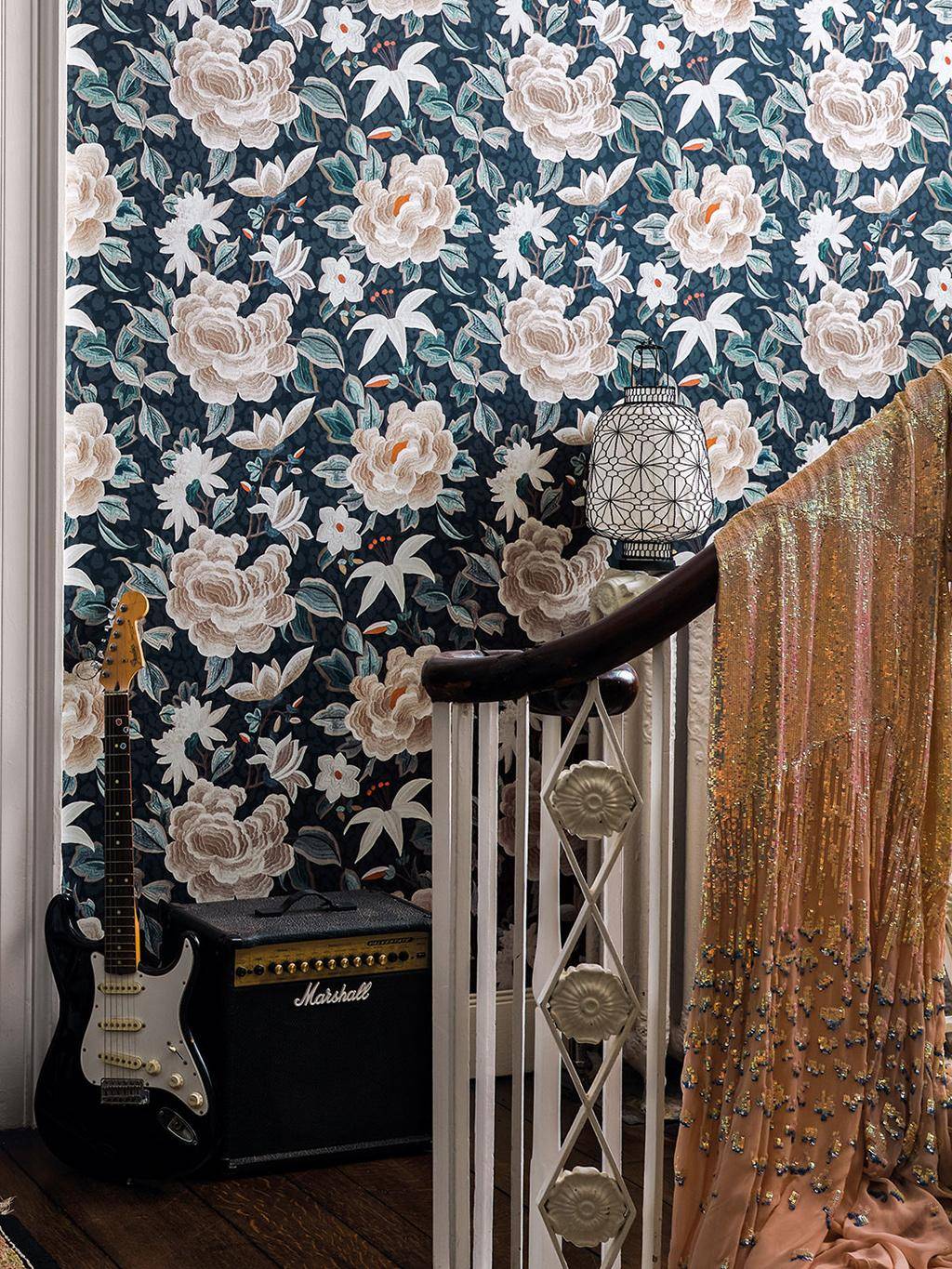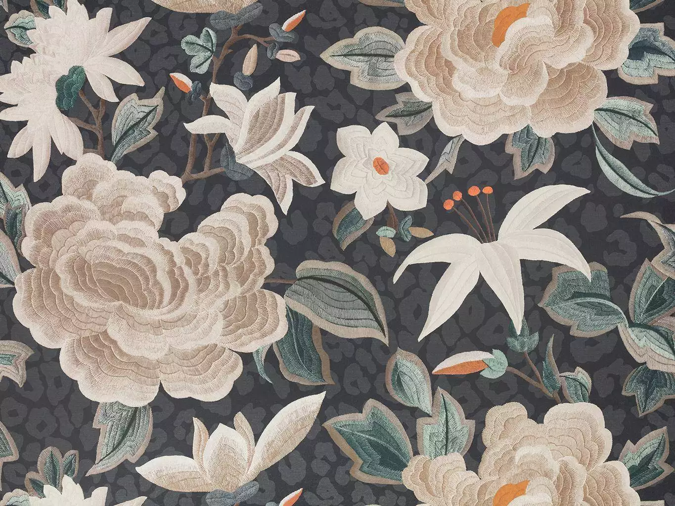 Ferne Reisen und feine Handwerkskunst klingen im Design der Tapete Lavinia mit - wie ein Fund aus einer anderen Zeit. Zart gestickte Blüten aus Seidenfäden entfalten ihre Schönheit auf dunklem Leopardenfond, der auf den ersten Blick anmutet ein Blütenteppich in der dunklen Nacht. In jedem Detail spürt man den Hauch eines Seidenschals aus den 1920ern, durch den dieses Design der Temperley London x Romo Kollektion inspiriert ist. Die replizierte Stickerei entfaltet in dieser Tapete subtile, handwerkliche Raffinesse – kunstvoll, feminin und unverwechselbar elegant.