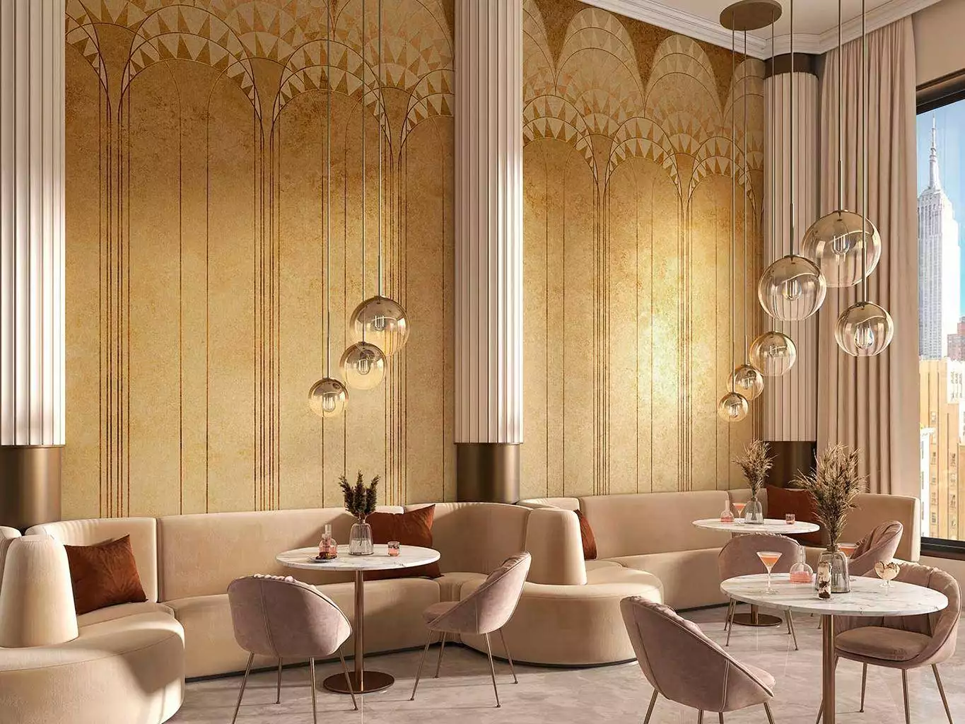 Das Motiv LEXINGTON von Tecnografica ist eine Hommage an den Art-Déco-Stil – luxuriös, geometrisch, glamourös. Das Design zeigt symmetrische Fächerformen und elegante vertikale Linien in Goldtönen, die an klassische Architektur und die Eleganz der 1920er Jahre erinnern. Die dezente Patina verleiht dem Design Tiefe und Charakter. Ideal für Hotels, Bars oder elegante Wohnräume, die ein Gefühl von urbanem Chic und zeitloser Raffinesse vermitteln möchten. LEXINGTON ist vollständig skalierbar – die Abmessungen lassen sich individuell an dein Projekt anpassen. Smart, inspiriert und flexibel.