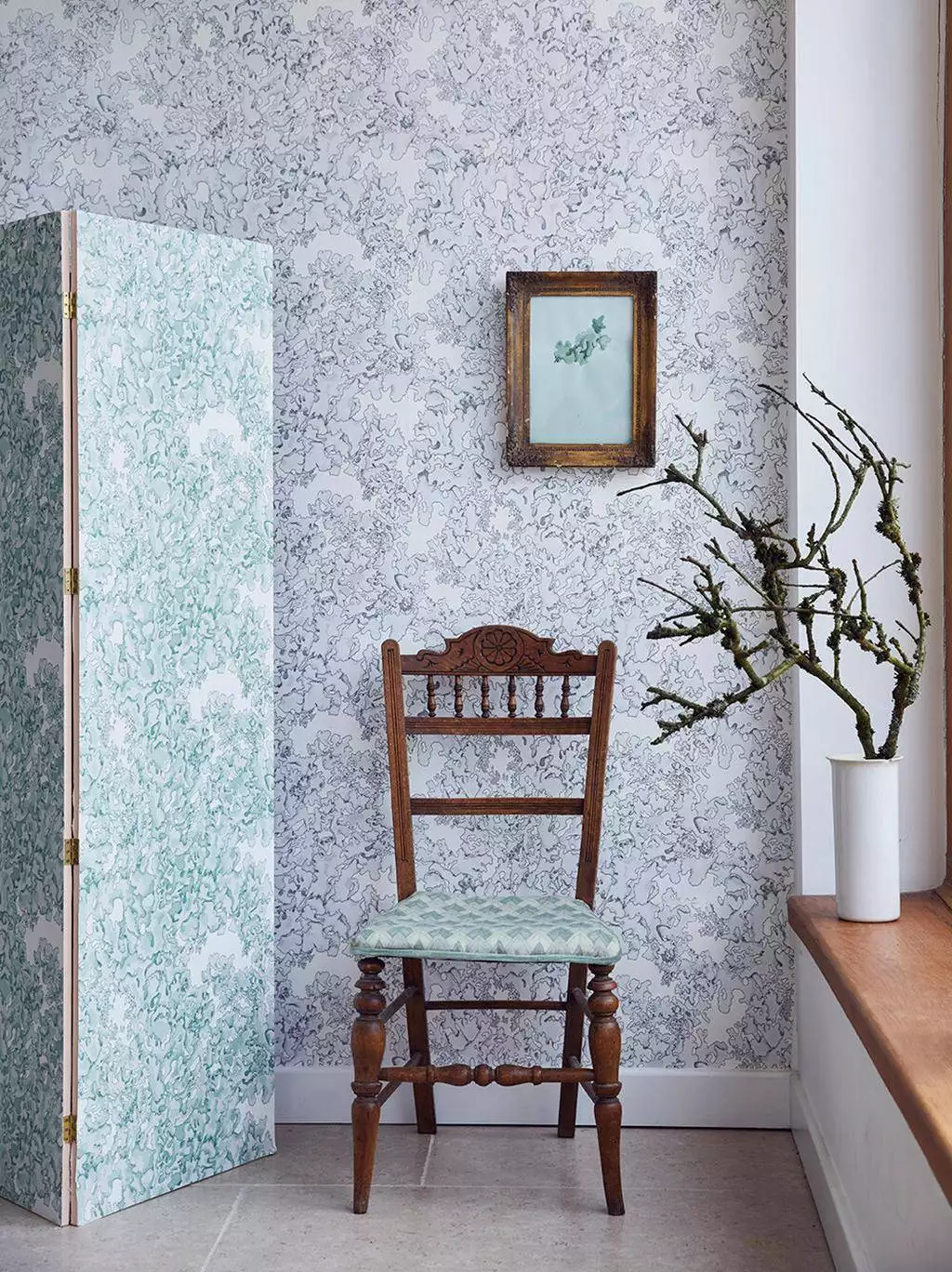 Bringen Sie die stille Poesie der Natur in Ihr Zuhause mit der Tapete "Lichen" in der Farbe "Dust", kreiert von der renommierten Designerin Abigail Edwards. Diese kunstvolle Tapete entspringt einer präzisen Gouache-Malerei und wird durch feine Stiftbearbeitung zu einer faszinierenden strukturellen Illusion veredelt.