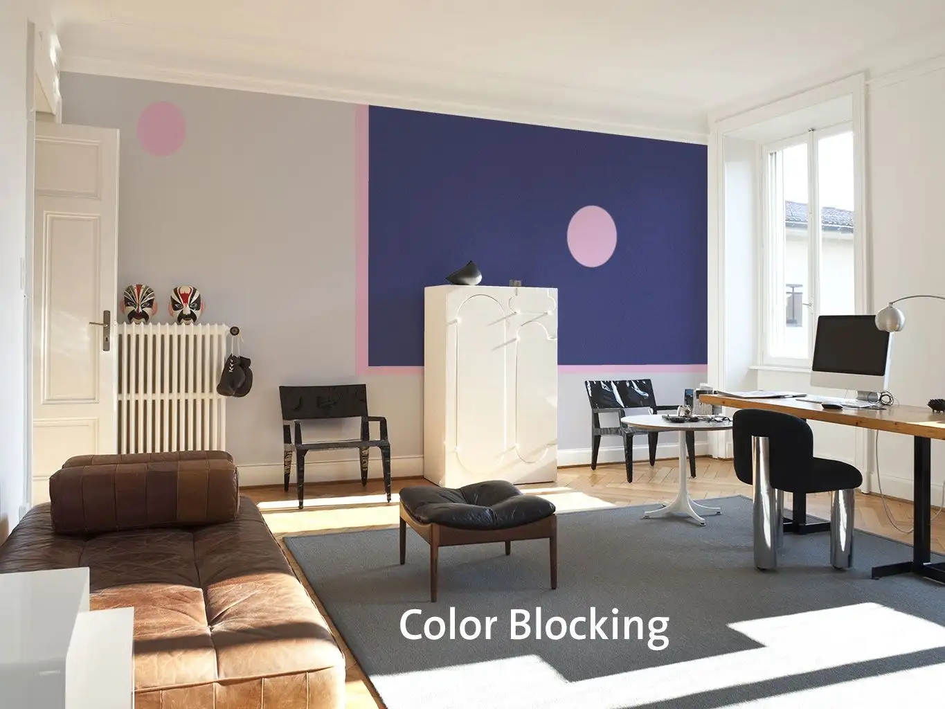 Sie können nur eine Wand oder einzelne Bahnen mit weißen Wänden in einem Raum kombinieren, oder sie wagen eine bunten Farbmix mit Color Blocking-Effekt. Kombinieren Sie sattes Gelb mit einem tiefen Blau, definieren Sie ihre Wände mit einem starken Kontrast zwischen Anthrazit und einem hellen Rosa, oder lassen Sie Farben, die nahe beieinander liegen, wie sattes Blau, helles Blau und ein leichtes Türkis miteinander spielen.
