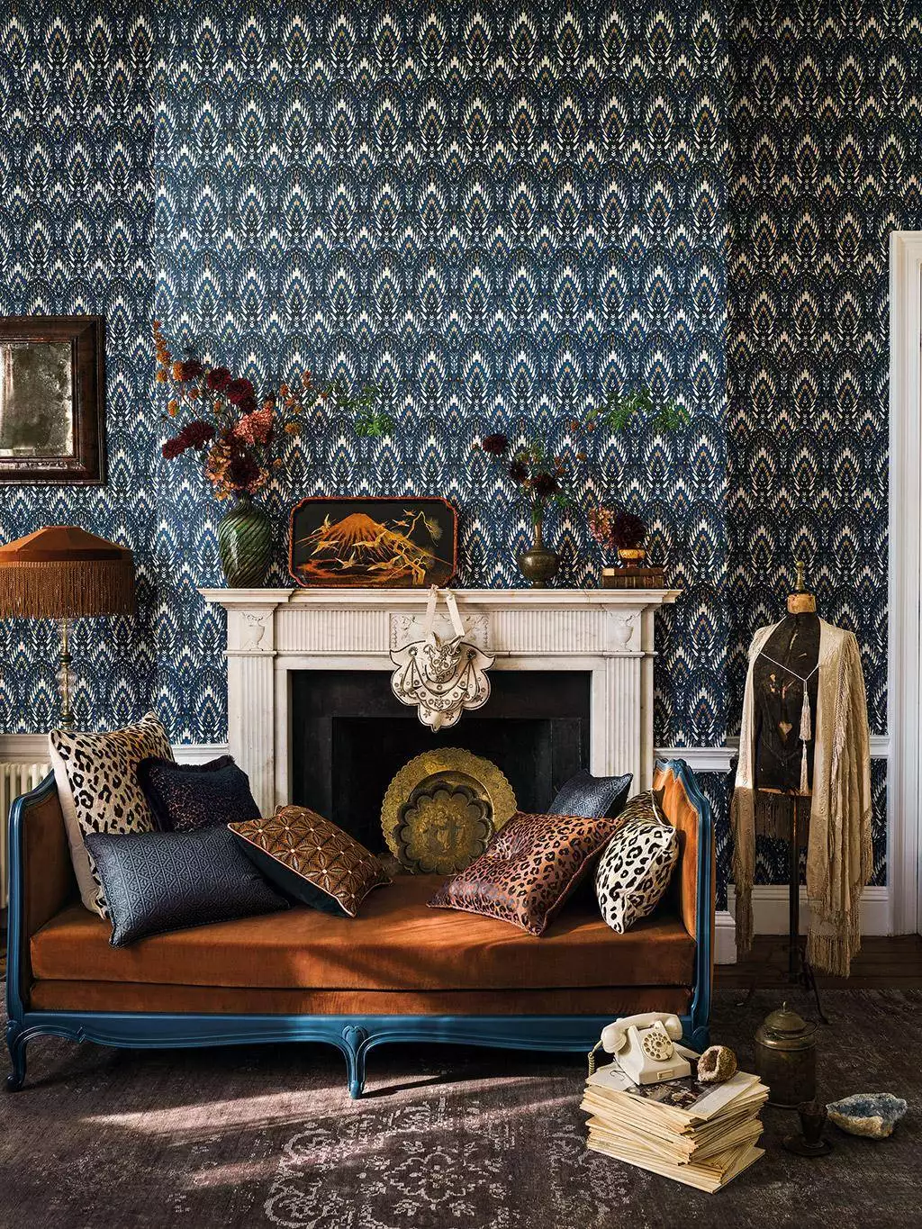 Die Kollektion Temperley London x Romo präsentiert mit "Lolana" eine Tapete, die von der faszinierenden Schönheit eines Schmetterlingsflügels inspiriert ist – aufgebaut Schicht für Schicht, im präzisen Rhythmus, voller versteckter Details. Das Design entfaltet sich in intensivem Kobaltblau, durchzogen von hellen und metallischen Akzenten, die je nach Lichteinfall lebendig schimmern. Eine aufwendige Drucktechnik verleiht der Oberfläche eine subtile, fast gewebte Struktur. Lolana verbindet organische Bewegung mit klarer Geometrie – ein Design, das Natürlichkeit und Raffinesse mühelos vereint und jedem Raum eine ruhige, moderne Spannung verleiht.