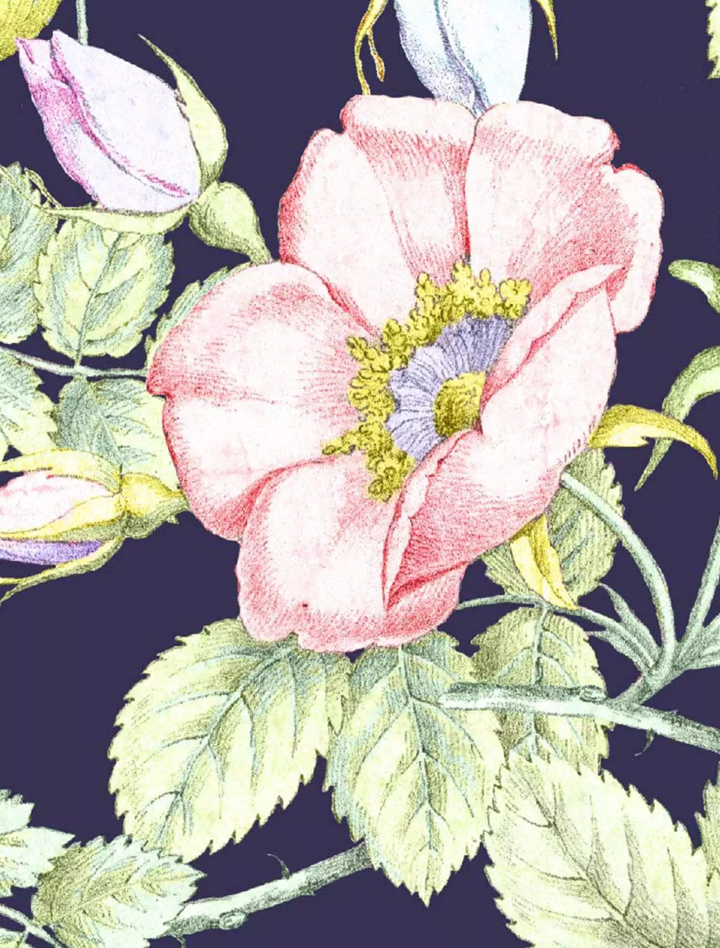 Meine Ur-Ur-Ur-Ur-Großmutter Luise liebte ihren Garten voller Rosen und war die erste Künstlerin in meiner Familie. Ihr zu Ehren entwickelte ich die Kollektion „Luises Garden“. Verspielte romantische Blüten in zarten Rottönen mit lindgrünen Blättern sind naturalistisch illustriert und stehen in einem schönen Kontrast auf dem beruhigenden sommernachtblauen Hintergrund.