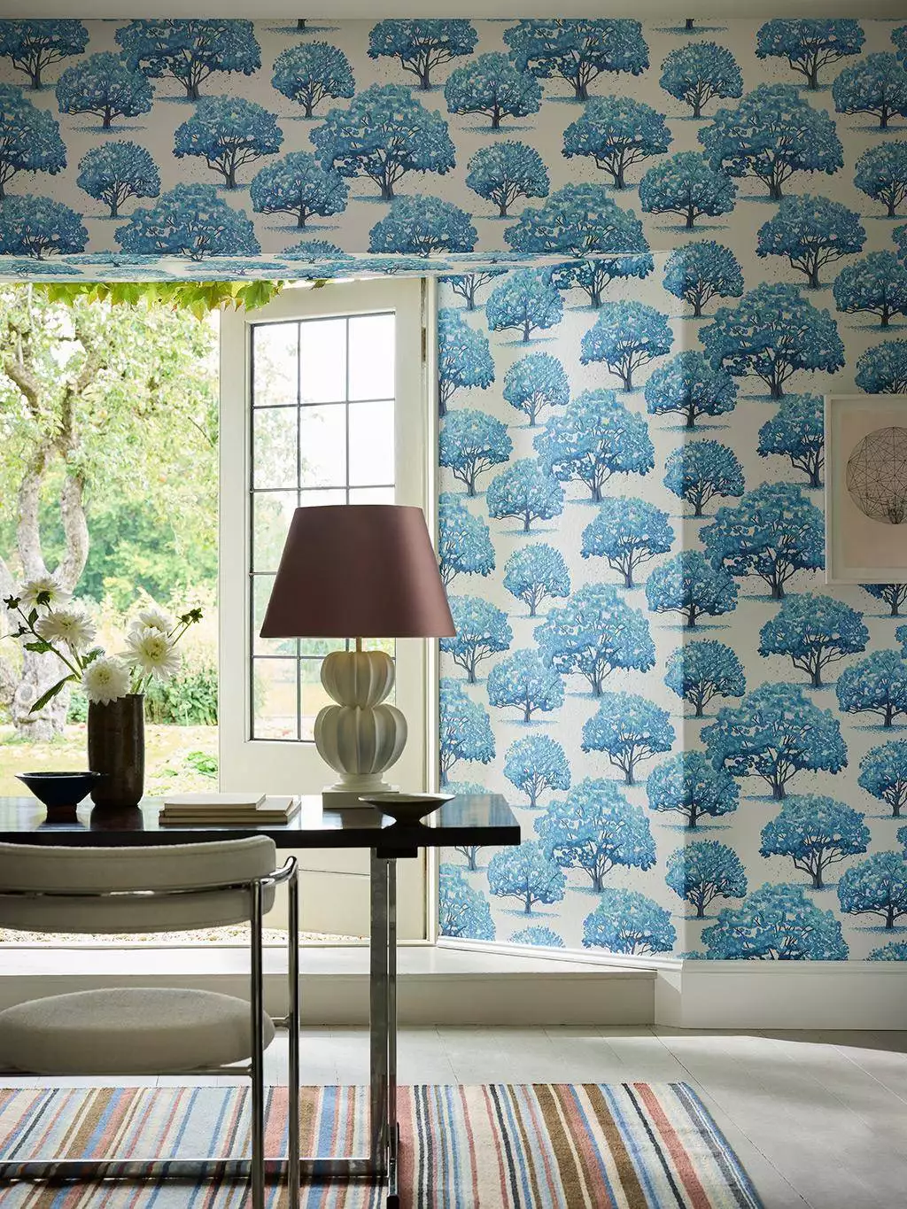 Magnolia Blossom von Little Greene zeigt den Blütenreichtum vierer verschiedener National-Trust-Gärten. Magnolien gehören zu den ältesten Blütenpflanzen der Welt - und zu den eindrucksvollsten. Magnolia Blossom zeigt vier besondere Exemplare aus den National-Trust-Gärten in Nymans (Sussex), Bodnant (Nordwales) sowie den Anwesen Lanhydrock und Trengwainton in Cornwall. Das beruhigende Muster stilisierter Magnolienbäume mit dichten Kronen und zarten Blüten entwickelt eine elegante, fast meditative Wirkung - ideal für Schlafzimmer und ruhigere Wohnbereiche. Ebenfalls in den Farbgebungen Slaked Lime, Indian Yellow, Masquerade und Hopper zu haben. Sprechen Sie uns an.