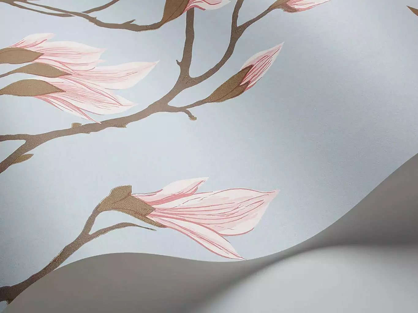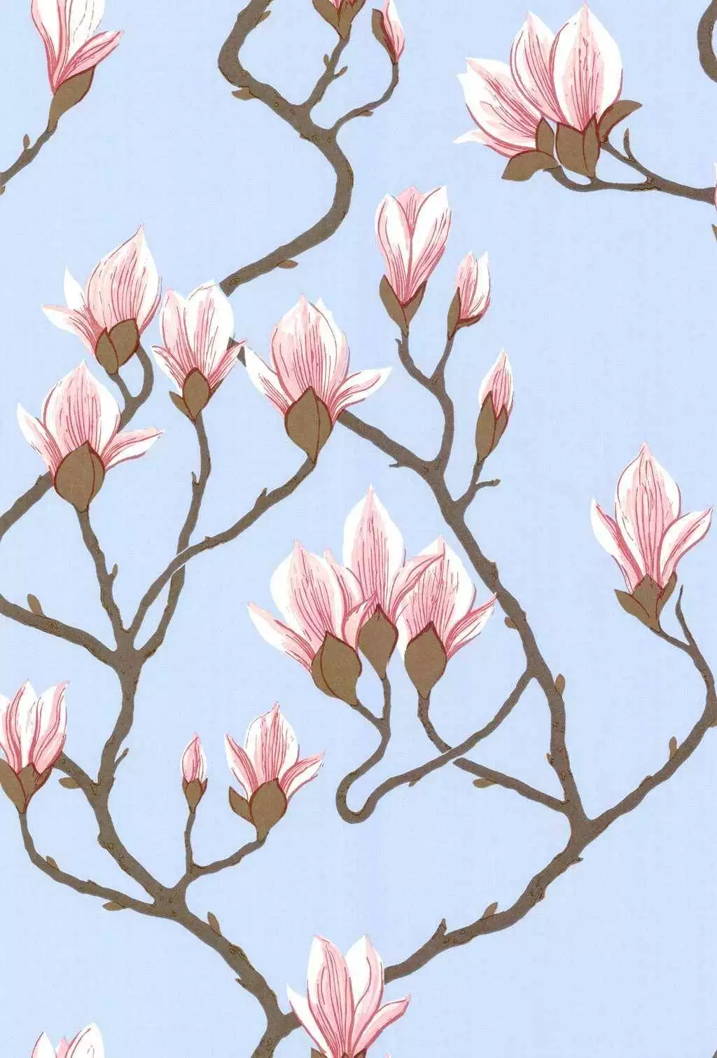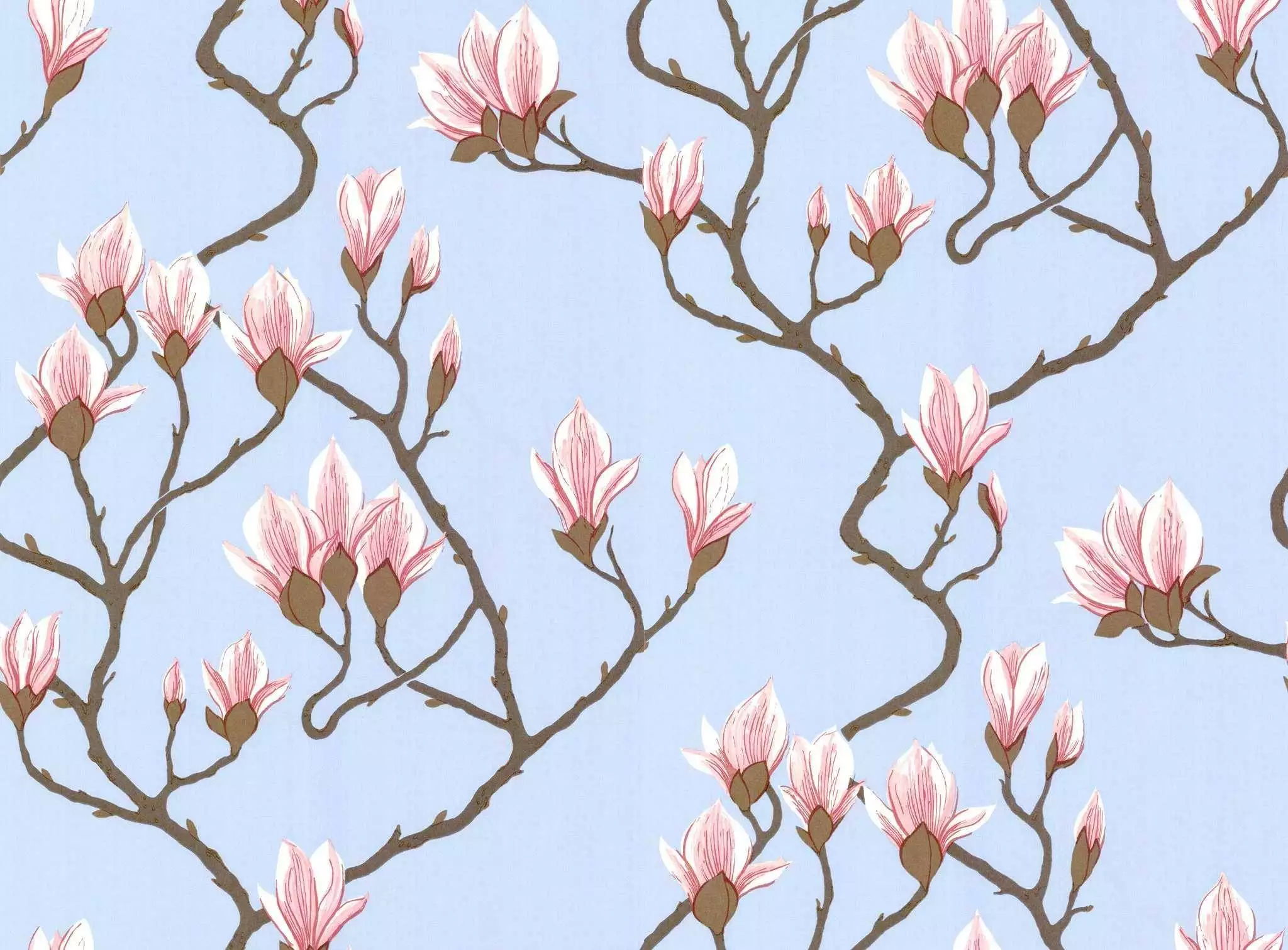 Zart, leicht und doch von einer ausdrucksstarken Schönheit. Gut gelaunt richten auf dieser Tapete die schönen Blüten der Magnolie Ihre Köpfe in Richtung Himmel und verbreiten besonders als Wandgestaltung im Wohnzimmer eine positive und beschwingte Atmosphäre.