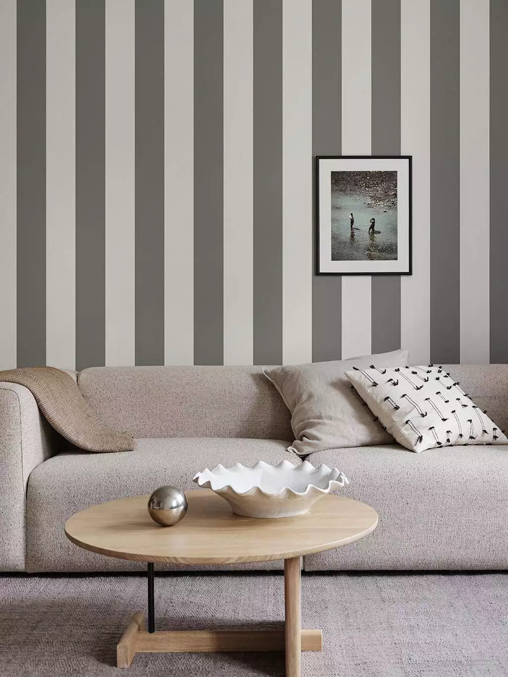 Die Streifen-Tapete Magnus Dark Gray kombiniert breite Blockstreifen in dunklem Graphitgrau und Off-White. Das Design ist klar, reduziert und kraftvoll. Perfekt als Akzentwand oder in Räumen, die eine elegante Atmosphäre mit Tiefe wollen. Modern und klassisch zugleich – für Stil ohne Schnickschnack.