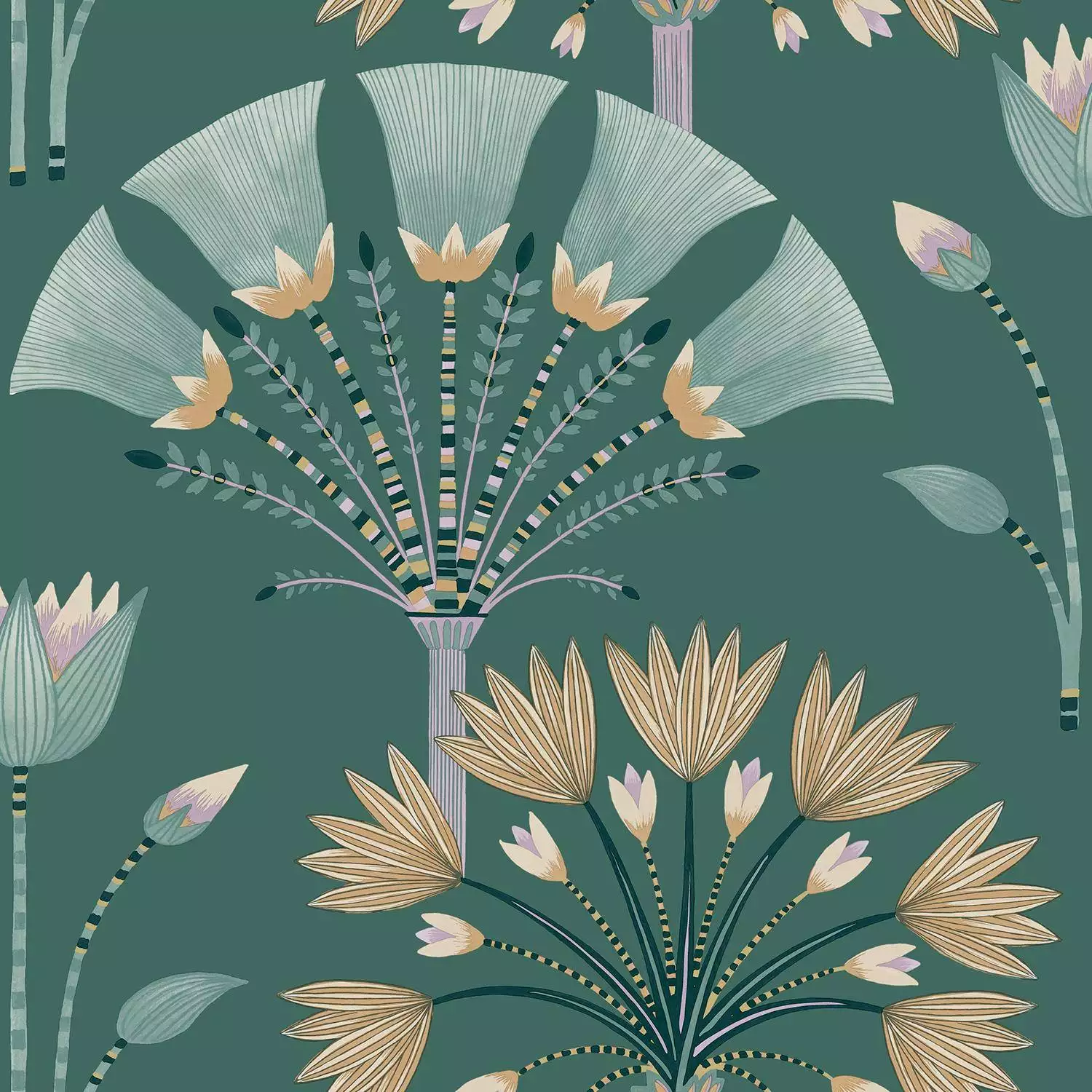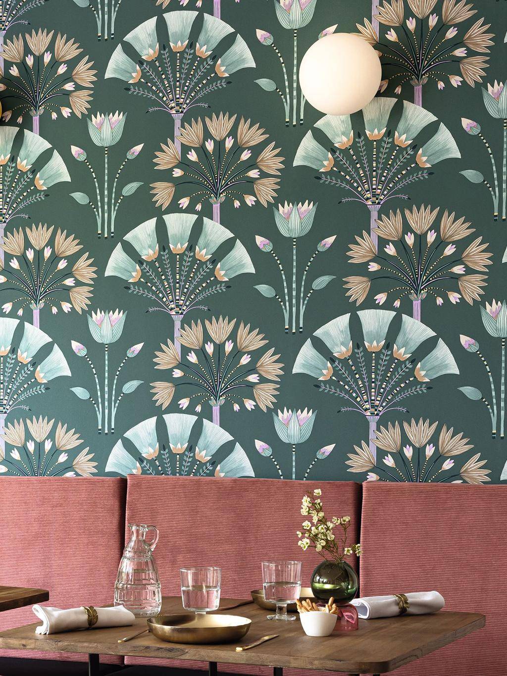 Die Tapete Majestic ist das Flaggschiff und der Star der Kollektion Elegance - ein Muster von klarer Schönheit. Die stilisierten Blüten öffnen sich auf smaragdgrünem Grund, durchzogen von zarten Goldlinien. Jeder Rapport wirkt wie eine Bewegung im Stillstand. Modern, mit einer Erinnerung an klassische Formen zwischen Jugenstil und Art Déco. Eine Tapete mit Charisma und leiser Grandezza.