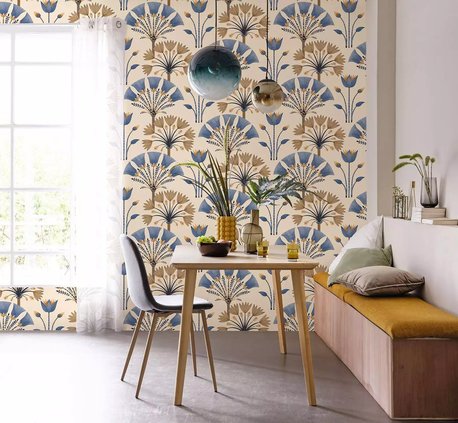 Die Tapete Majestic ist das Flaggschiff und der Star der Kollektion Elegance - ein Muster von klarer Schönheit. Die stilisierten Blüten öffnen sich auf zart cremefarbenem Grund, leicht und nordisch. Die Komposition wirkt strukturiert, fast geometrisch, und doch lebendig und modern, mit einer Twist klassischer Formen zwischen Jugenstil und Art Déco. Eine Tapete mit Stil und leiser Grandezza.