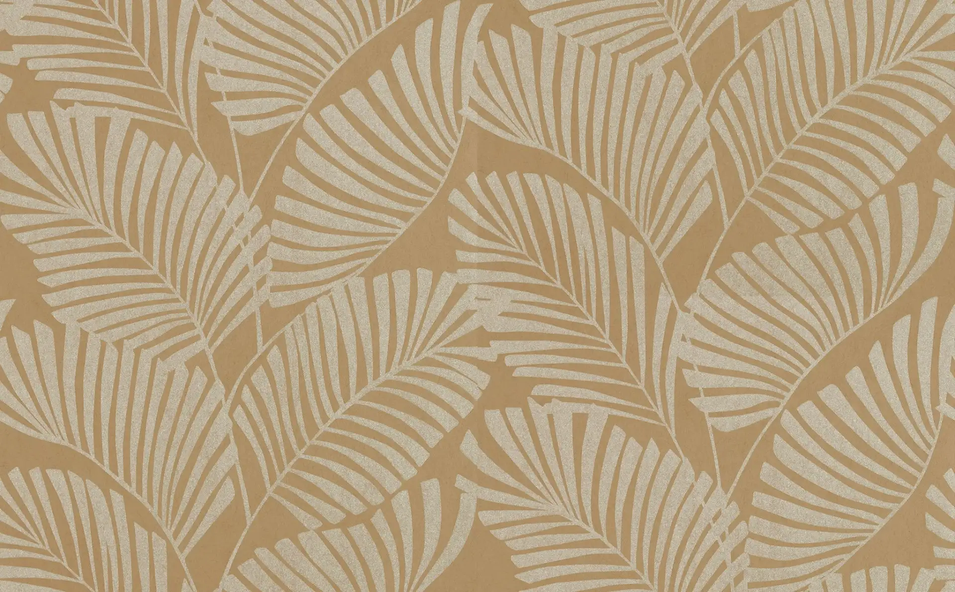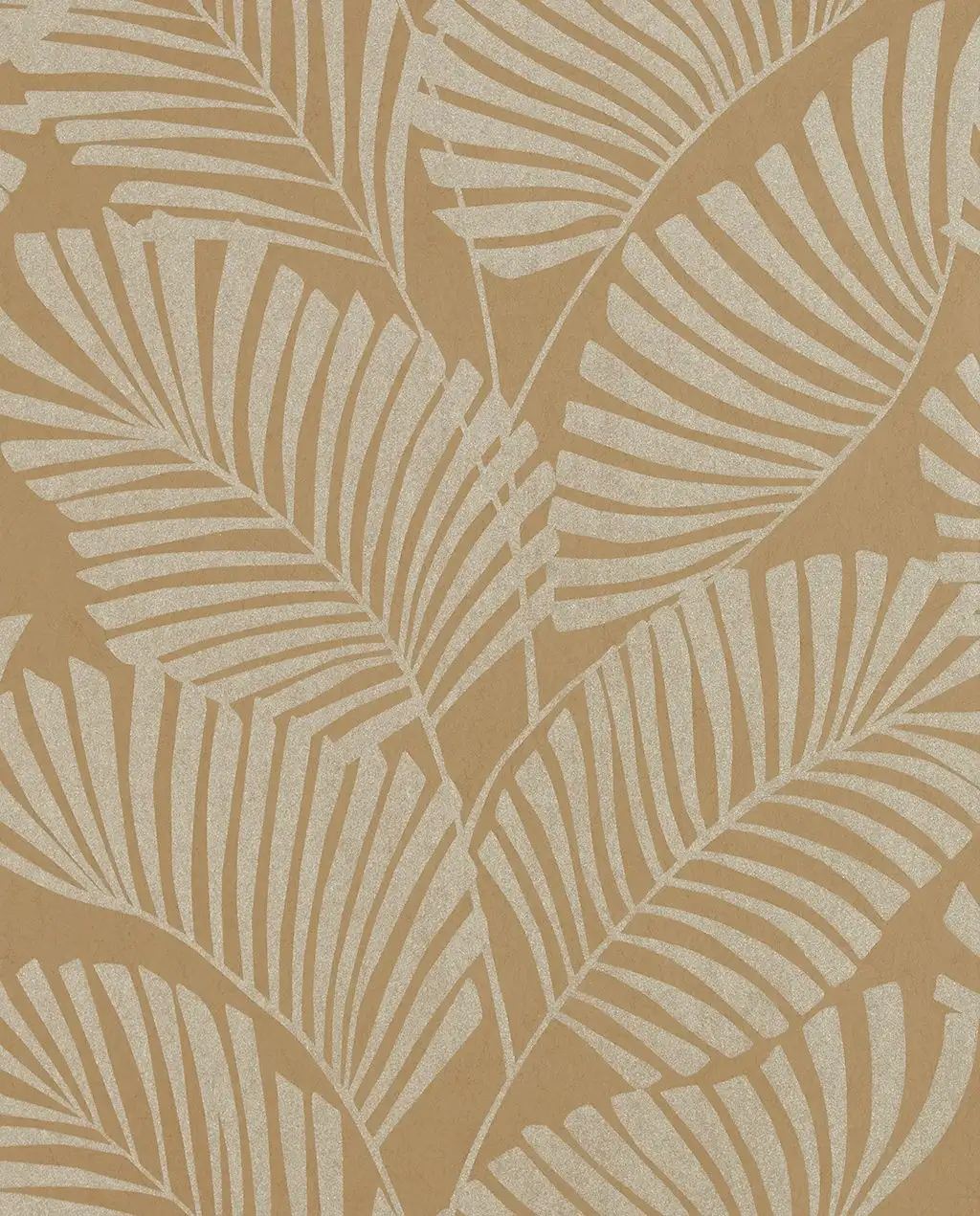 Die Tapete Mala ist für selbstbewusste und kreative Menschen genau das Richtige. Das fast schon grafische Muster mit den herrlichen Palmenblättern sorgt für ein warmes und lebendiges Gefühl in der Wohnung. Diese exklusive Vlies-Tapete braucht Platz! Sie wirkt am besten hinter einer Couch oder Sideboards und Kommoden mit klaren Formen und Farben. Vor allem mit hellen Farben geht sie mit ihren warmen Gold- und Ockertönen ein harmonisches Spiel ein. In lichtdurchfluteten Räumen bringt aber auch die Kombination mit rustikalen Möbeln einen facettenreichen Kontrast ins Wohnzimmer oder Schlafzimmer.