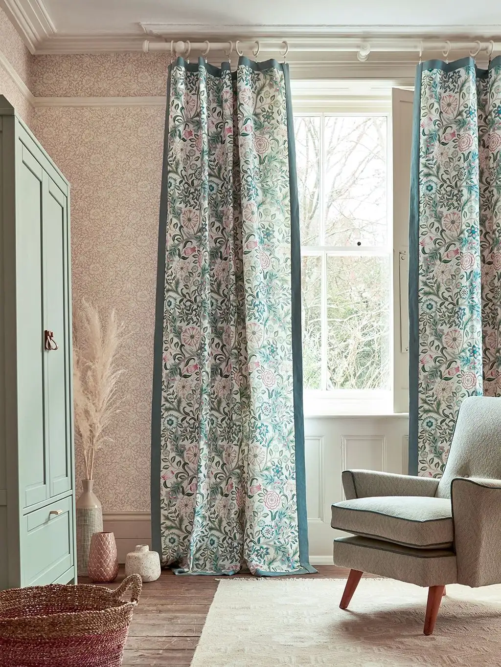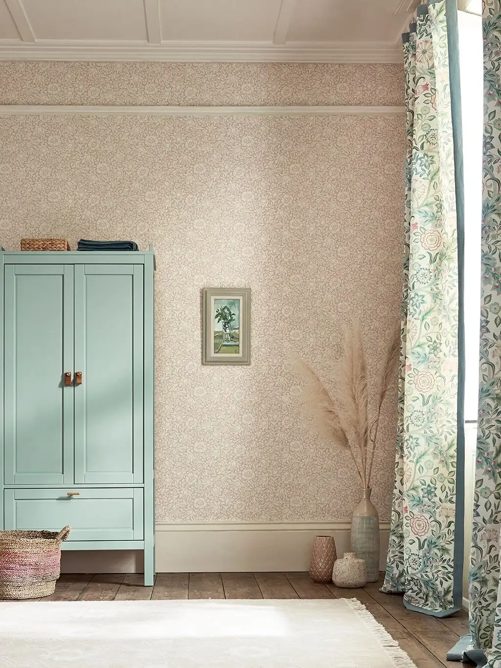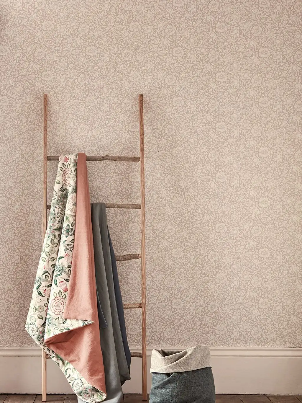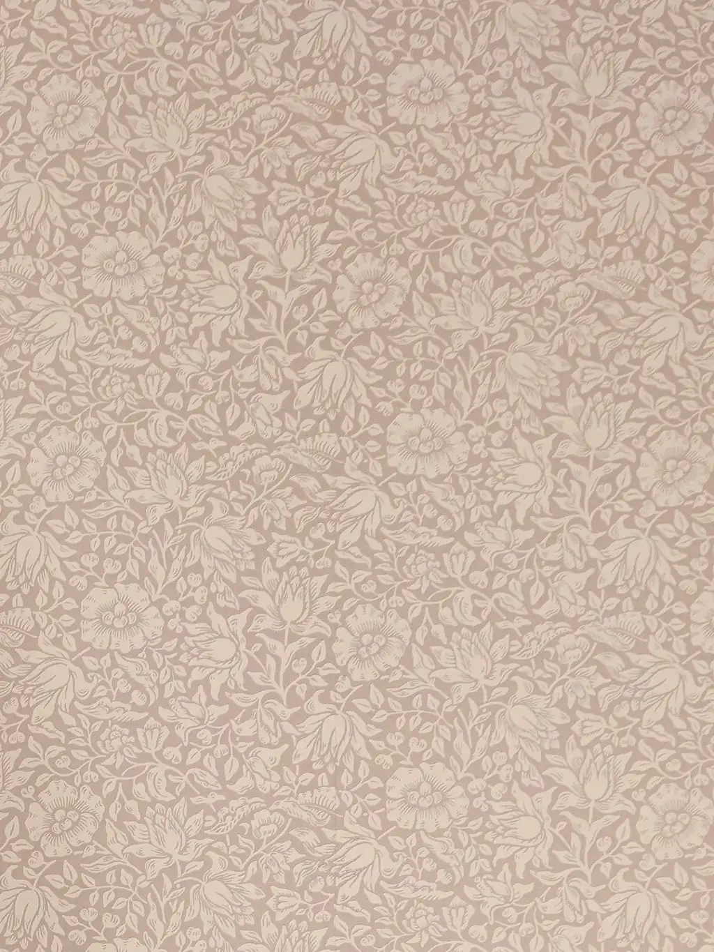 "Mallow Dusky Rose" präsentiert ein zartes, unaufdringliches Muster. Das Muster besteht aus einem scheinbar endlosen Blumendesign in einer Palette von Altrosa und Hellrosa.