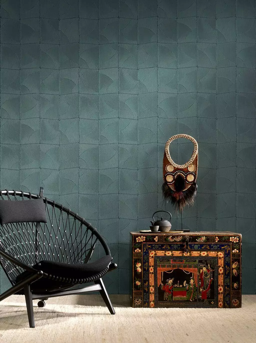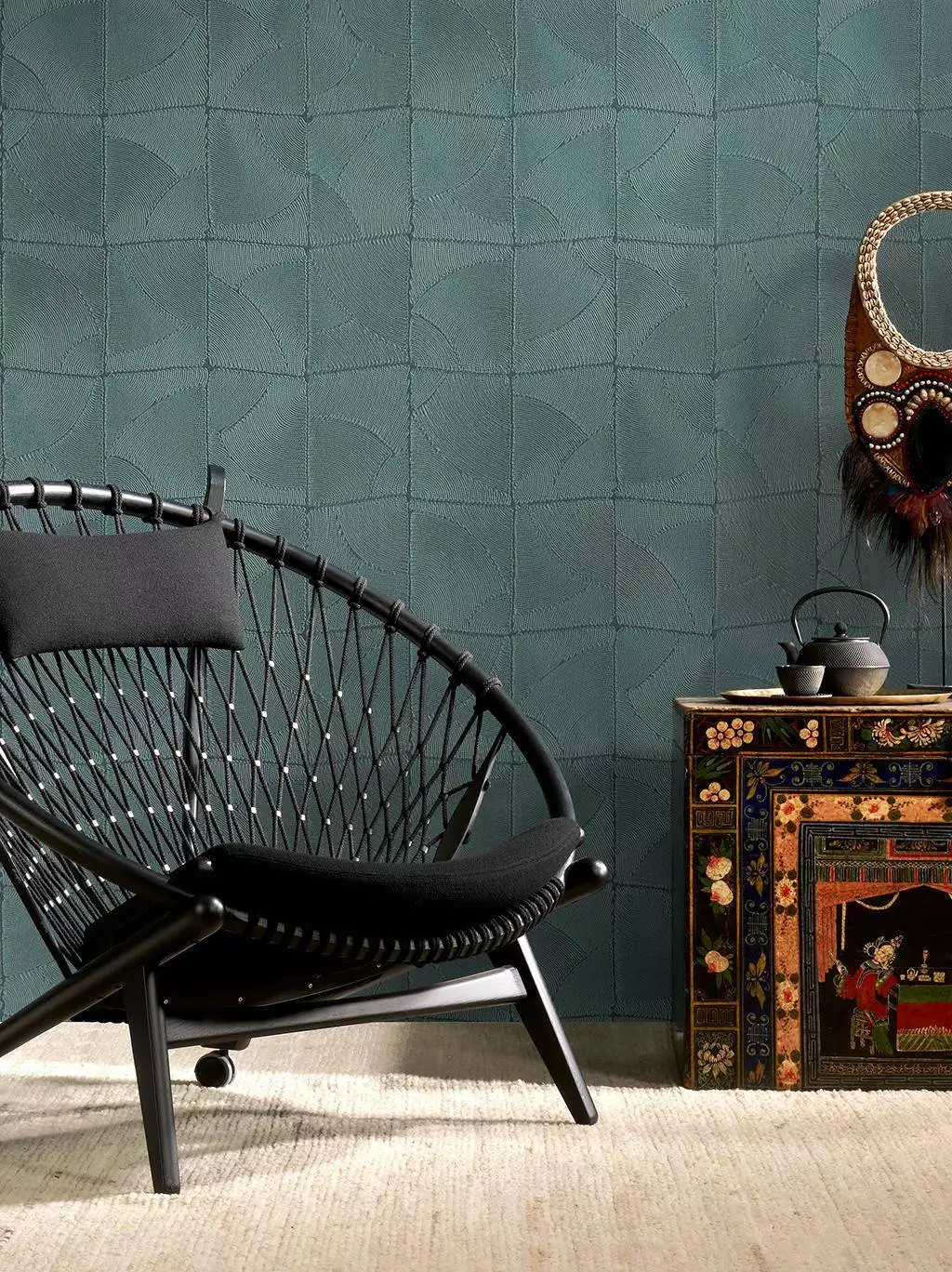 Diese luxuriöse Vinyltapete beeindruckt mit einer einzigartigen, strukturierten Oberfläche. Ihr Design basiert auf handgefertigten Seilmustern, die zu geometrischen Formen arrangiert wurden. Die Prägung erzeugt eine markante, reliefartige Wirkung und sorgt für eine außergewöhnliche Haptik. Die edle Farbgebung in tiefem Grün verleiht Räumen eine ruhige, stilvolle Atmosphäre. Manila Atlas kombiniert kunstvolle Handwerkskunst mit modernster Produktionstechnik und eignet sich perfekt für stilvolle Wohn- und Geschäftsräume