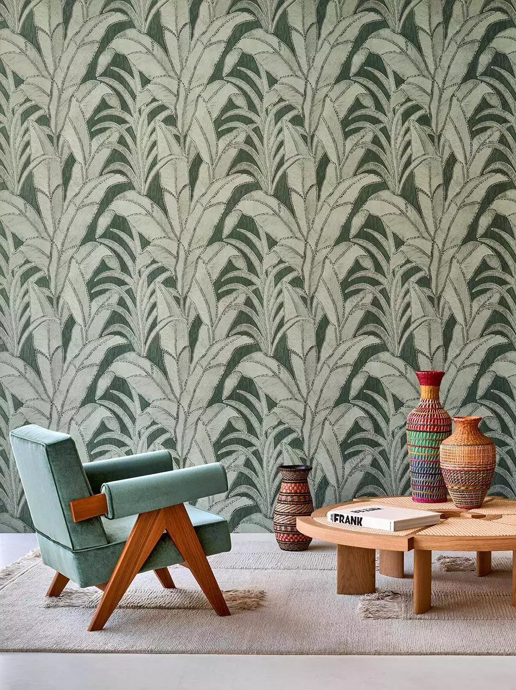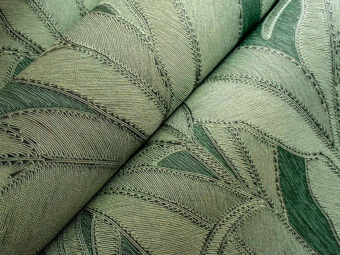 Diese exklusive Vinyltapete vereint florale Eleganz mit handwerklicher Präzision. Durch die detailreiche Prägung entsteht ein faszinierendes Relief, das an kunstvoll arrangierte Naturfasern erinnert. Die Blätterstrukturen, inspiriert von tropischer Vegetation, verleihen Räumen eine harmonische, organische Atmosphäre. In tiefem Grün gehalten, sorgt das Design für eine edle, beruhigende Wirkung – perfekt für stilvolle Wohnräume oder luxuriöse Akzente.