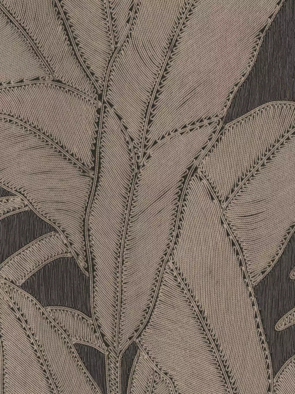 Manila Botanic, col. 05 bringt die Schönheit tropischer Blätter an die Wand. Das aufwendig geprägte Design entsteht durch handarrangierte Seile, die ein markantes Relief erzeugen. Die Kombination aus sanften Naturtönen und dunklem Hintergrund verleiht der Tapete eine elegante Tiefe. Als hochwertige Vinyltapete überzeugt sie durch edle Optik und strapazierfähige Qualität. Perfekt für stilvolle Interieurs mit natürlichem Charme.