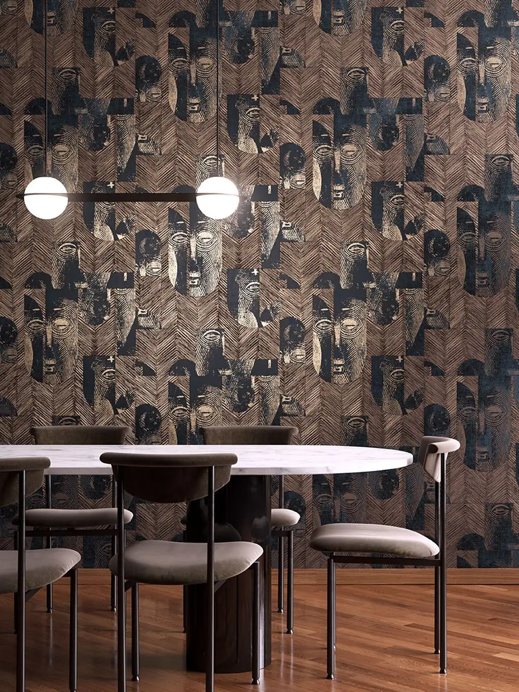 Ein Hauch von Exotik und einen noch größeren Hauch Luxus bringt die Tapete Mask Coconut an Ihre Wand! Das Muster mit den fein gezeichneten Masken, deren Steinoptik Sie auf der Tapete ganz wunderbar erkennen können, spielt mit dem Charme der durch harte Linien dargestellten Handwerkskunst und der leichten Optik der Maserungen der Blätter der Kokospalme. Die changierenden warmen Brauntöne geben der Oberfläche dieser Vliestapete eine fantastische Lebendigkeit und Ausdrucksstärke. Das Farben- und Musterspiel erzeugt einen atemberaubenden 3D-Effekt.