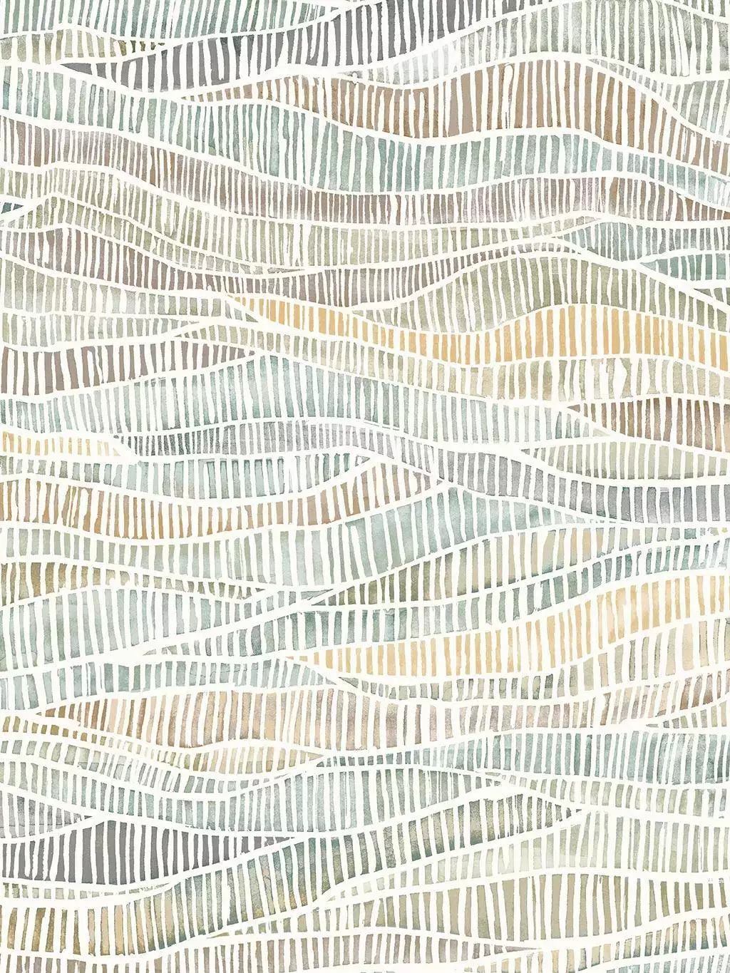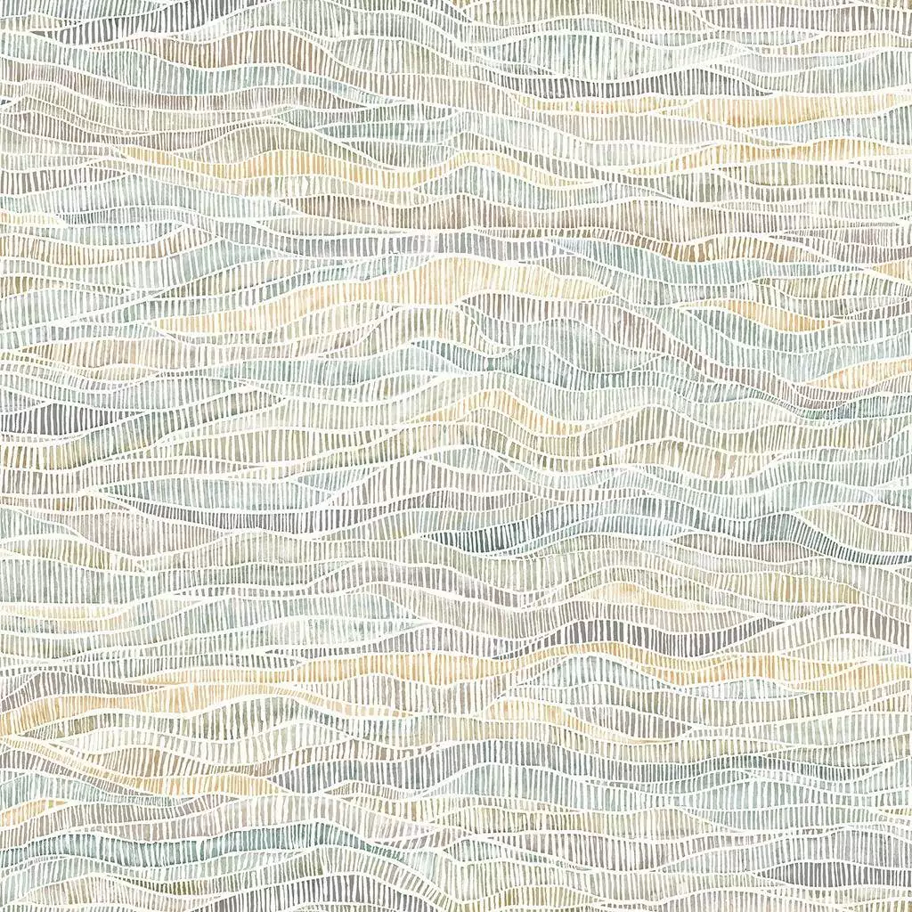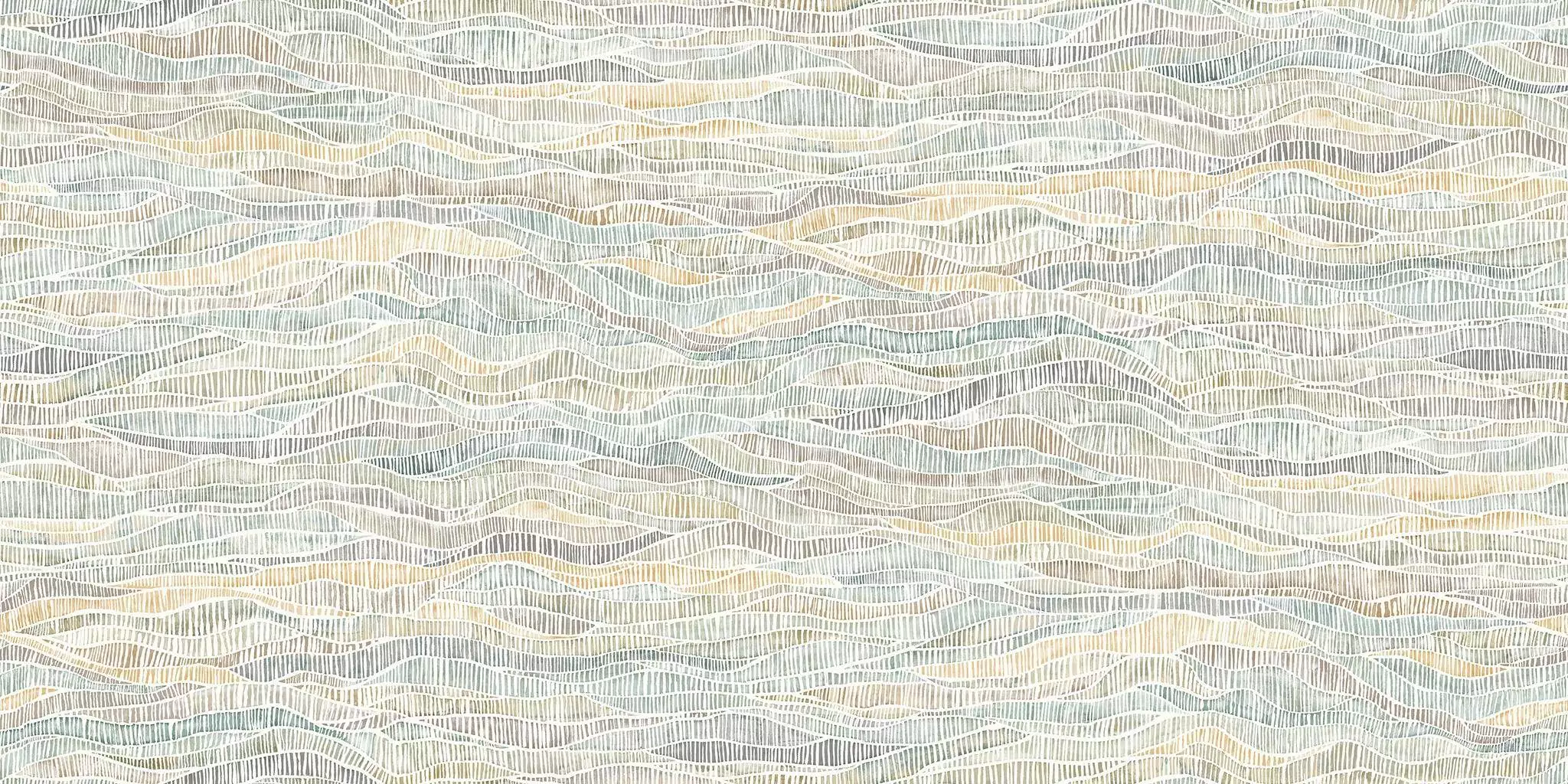 Die Tapete "Meadow Pratum" präsentiert ein Hügellandschaftsmuster mit feinen Streifen in den Farben Gelb, Grün und Braun. Der Name verbindet die englische Bezeichnung "Meadow" für Wiese mit dem lateinischen "Pratum", was ebenfalls Wiese oder Grünland bedeutet. Diese Kombination deutet auf eine gestalterische Inspiration durch natürliche, grüne Landschaften hin.
