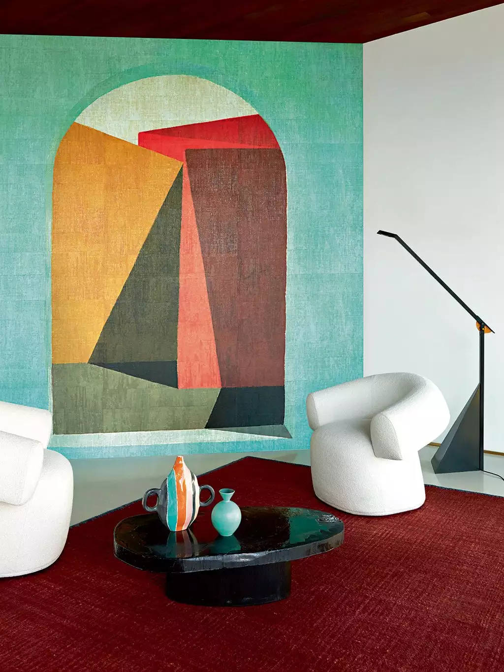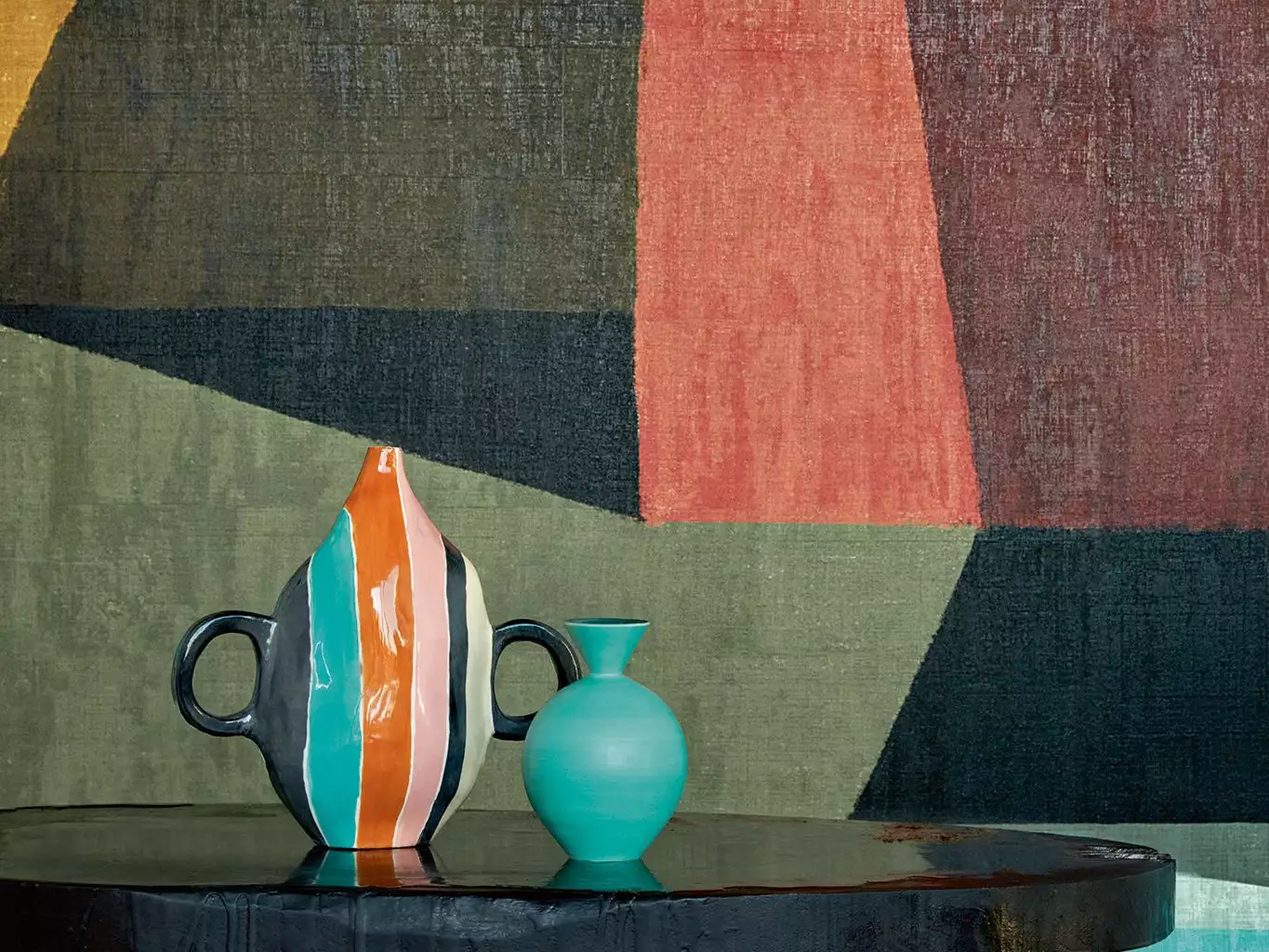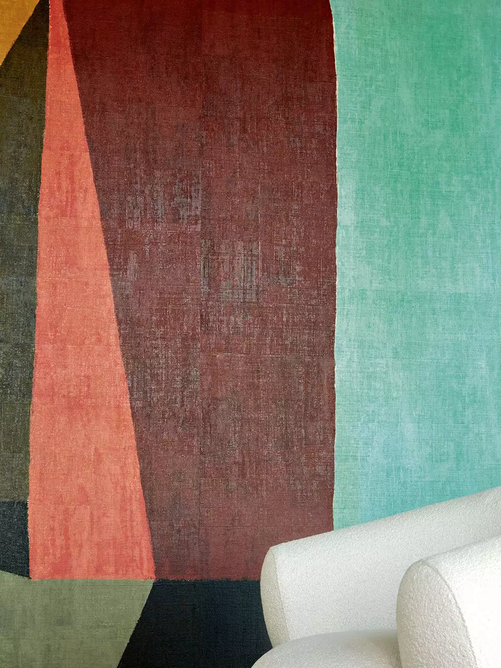 • Großformatige Muster, warme Farben und dezente Metallic-Effekte, die Tiefe und Eleganz schaffen