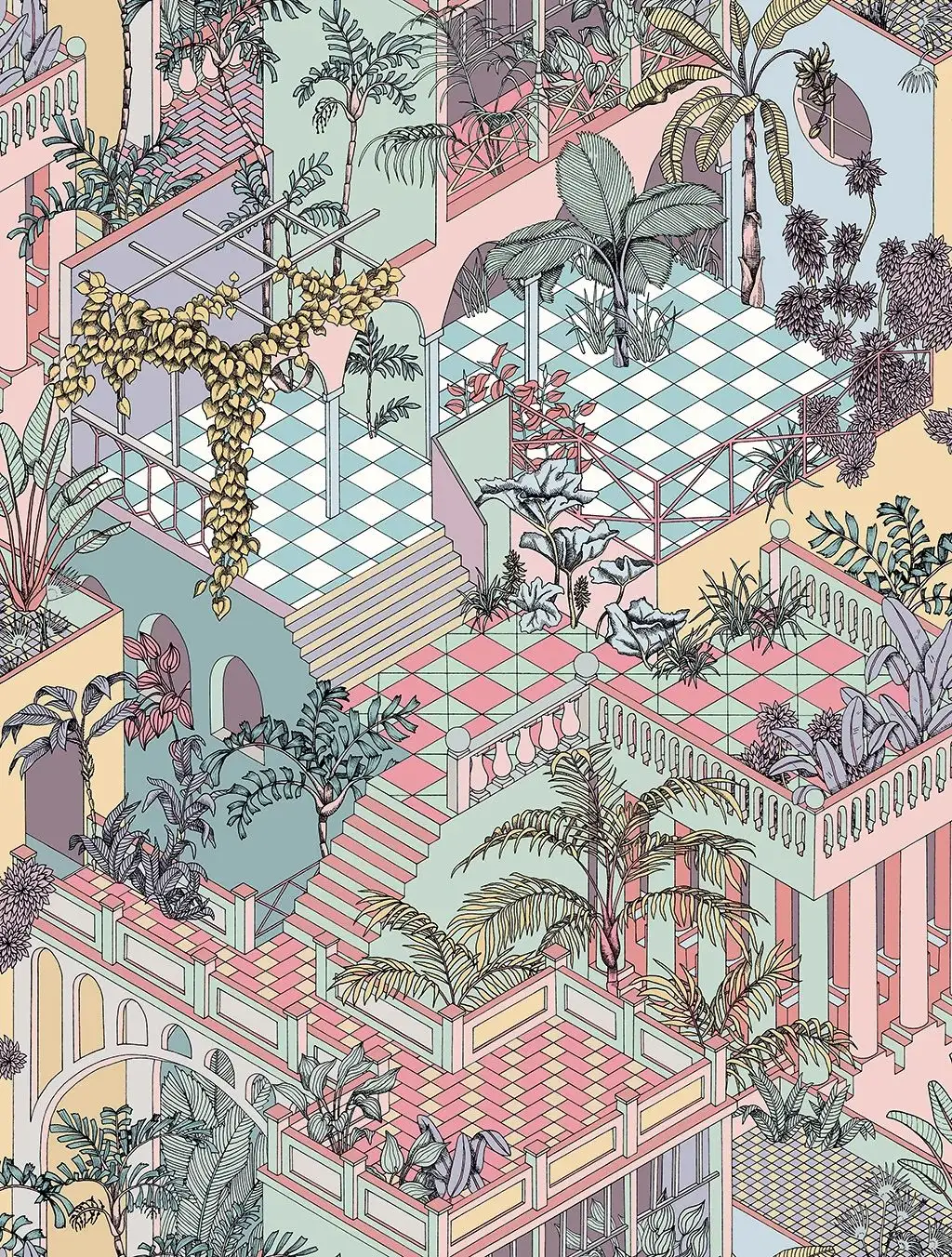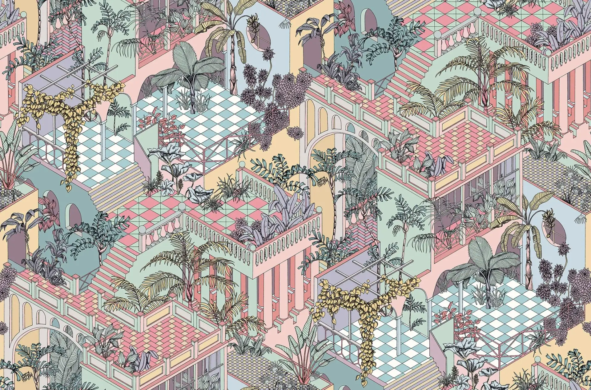 In sattem Grün oder zarten Rosètönen verzaubert die Vliestapete Ihr Zuhause. In einem richtigen Dschungel aus Palmen, Blättern, Ranken und vielen kleinen Terrassen und Dachgärten haben Sie das Gefühl, mittendrin im bunten Leben der Sonnenstadt zu sein. Das exotische Muster präsentiert sich wie handgemalt und setzt wunderbare Akzente zu modernen Möbeln mit klaren Linien und Formen. Dekorationsgegenstände im Mid-Century-Stil machen den sonnigen, urbanen Look perfekt. Tapezieren Sie ganze Wände oder setzen Sie Highlights mit einzelnen Bahnen und Ausschnitten – ganz wie es Ihnen gefällt!