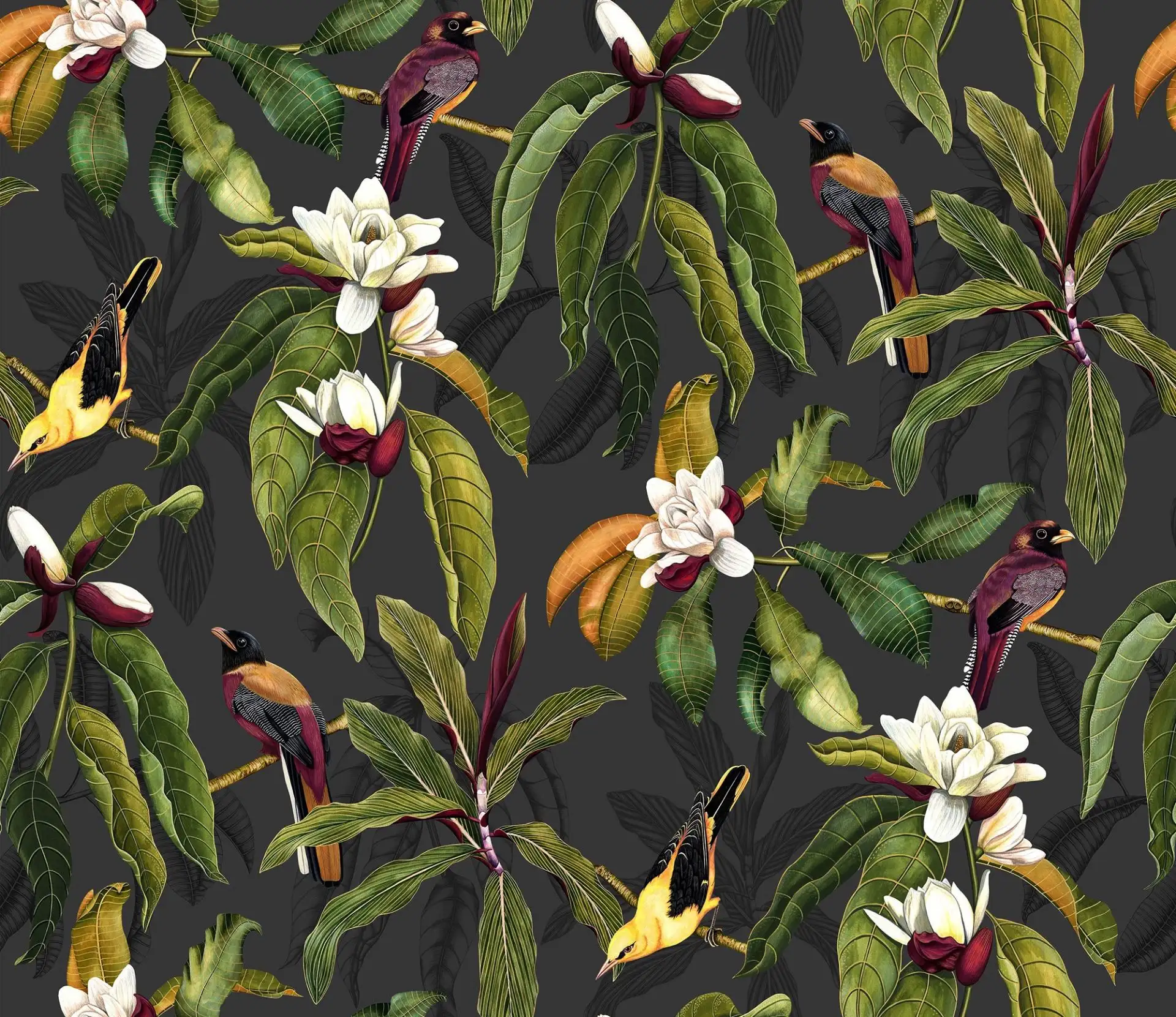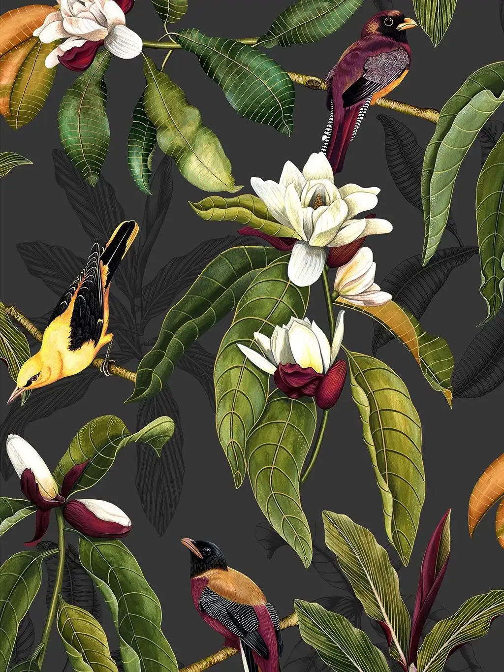 | Design: | Blumen, Blätter, Tapeten mit Vogelmotiven, Tier Tapeten |
