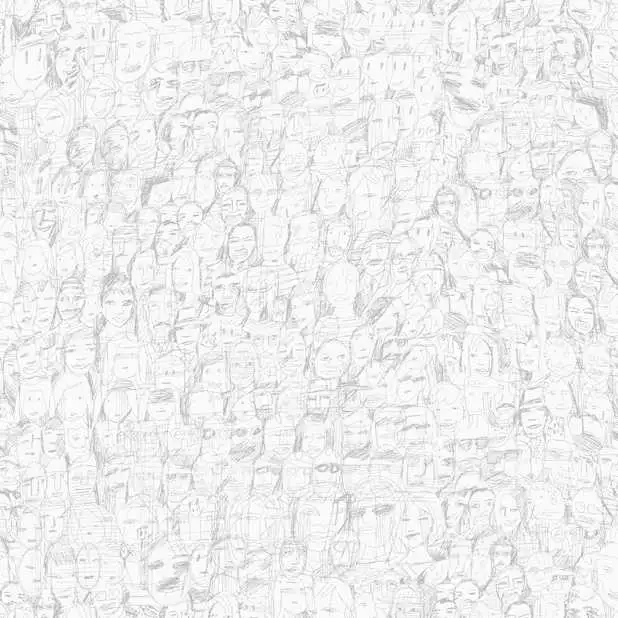 Mit dem Telefon in einer Hand und dem Kugelschreiber in der anderen, zeichnet uns Mariscal das, was für uns eine Erinnerung an Comiczeichnungen sind. Irgendwie rabaukenhaft, aber keinesfalls leichtherzig, sehen wir auf dieser Tapete, was wir alle irgendwann gezeichnet haben: Gesichter, Gesichtchen und nochmals Gesichter.