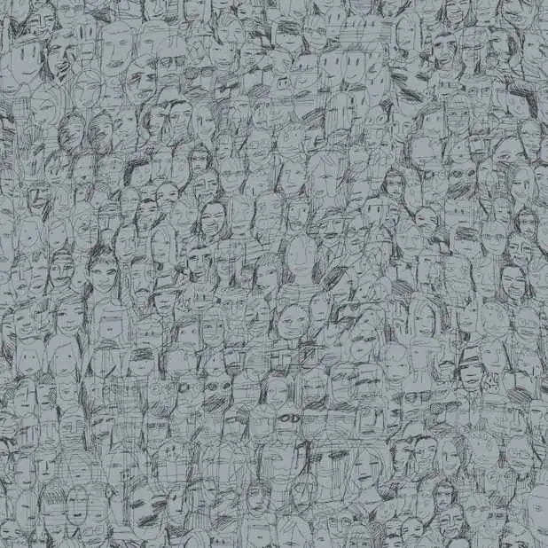 Mit dem Telefon in einer Hand und dem Kugelschreiber in der anderen, zeichnet uns Mariscal das, was für uns eine Erinnerung an Comiczeichnungen sind. Irgendwie rabaukenhaft, aber keinesfalls leichtherzig, sehen wir auf dieser Tapete, was wir alle irgendwann gezeichnet haben: Gesichter, Gesichtchen und nochmals Gesichter.