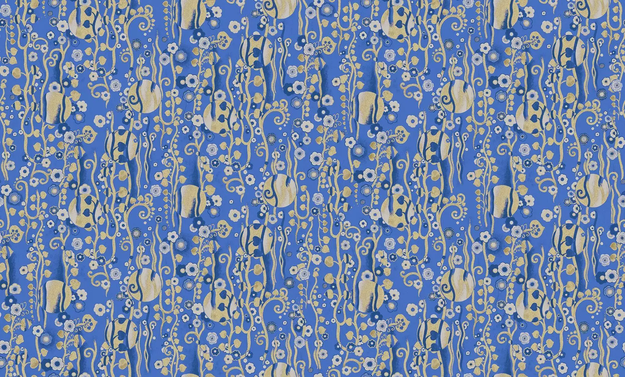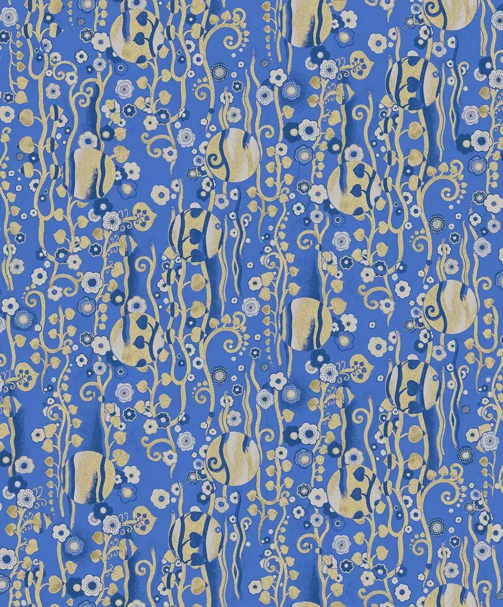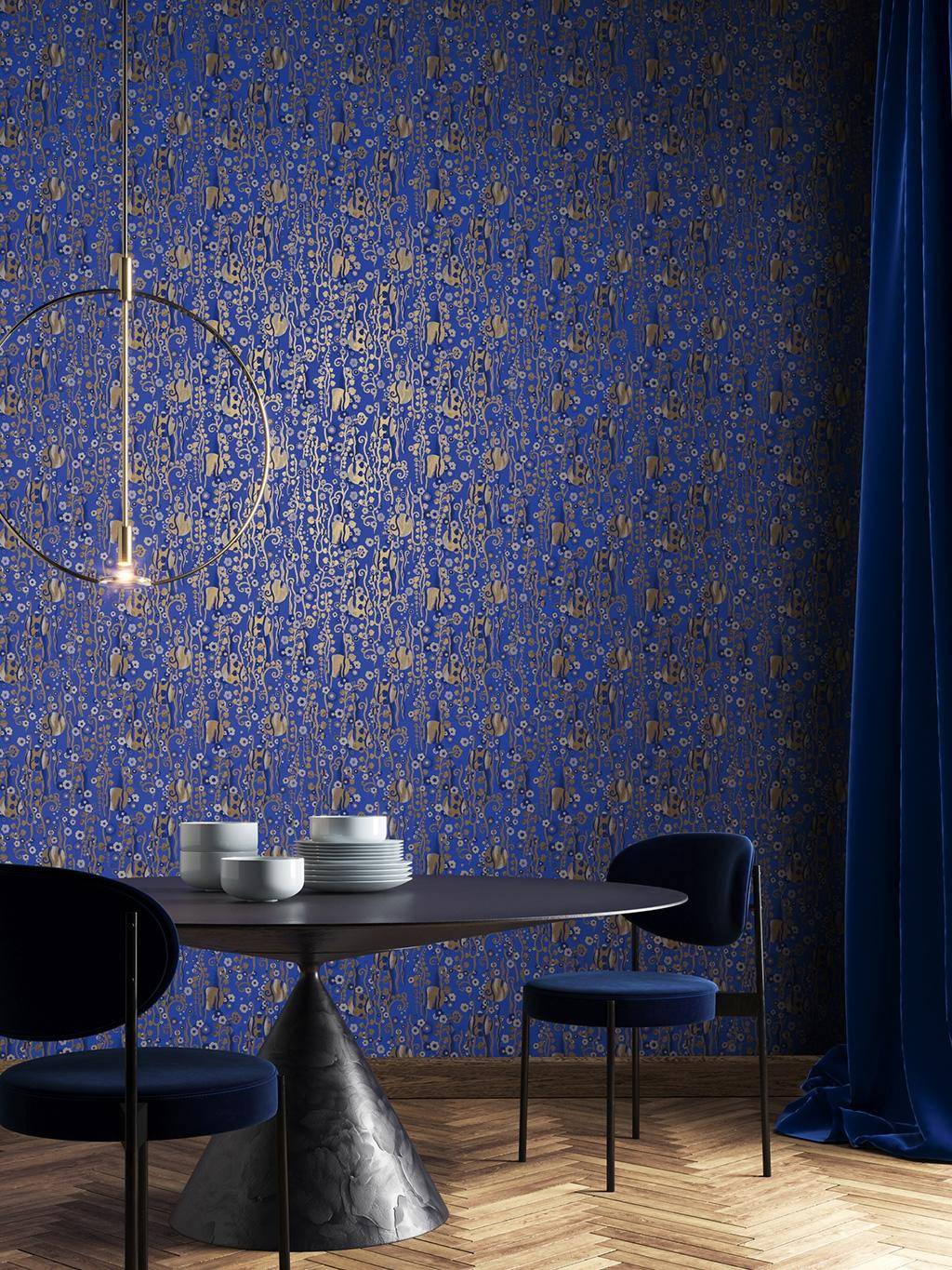 Die Tapete Mildred Eclipse arbeitet mit Kobaltblau, das leuchtend und doch still als Grund für florale Elemente dient. Blüten und Blätter werden darauf klar konturiert lebendig, Kreise scheinen wie Lupen über das Design zu laufen und Details hervorzuheben, wodurch das Motiv Bewegung bekommt. Die Kombination aus Farbe, floralen Formen und grafischen Rundungen hat vieles von modernem Art-Déco. Das Design ist präsent und hat fast etwas Royales. Perfekt für kultivierte Räume, die eine Prise Drama vertragen.