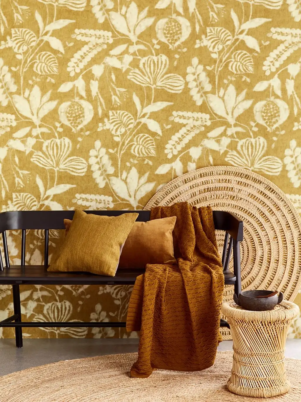 • Großformatige Muster, warme Farben und dezente Metallic-Effekte, die Tiefe und Eleganz schaffen