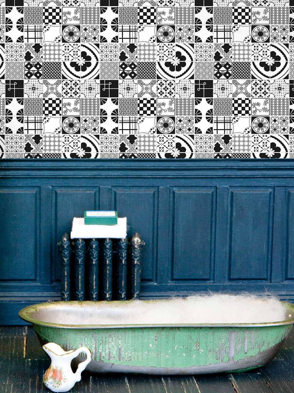Inspiriert von Kacheln ferner Länder konnten wir uns nicht für ein einziges Muster entscheiden, also haben wir sie in diese Tapete alle kombiniert!