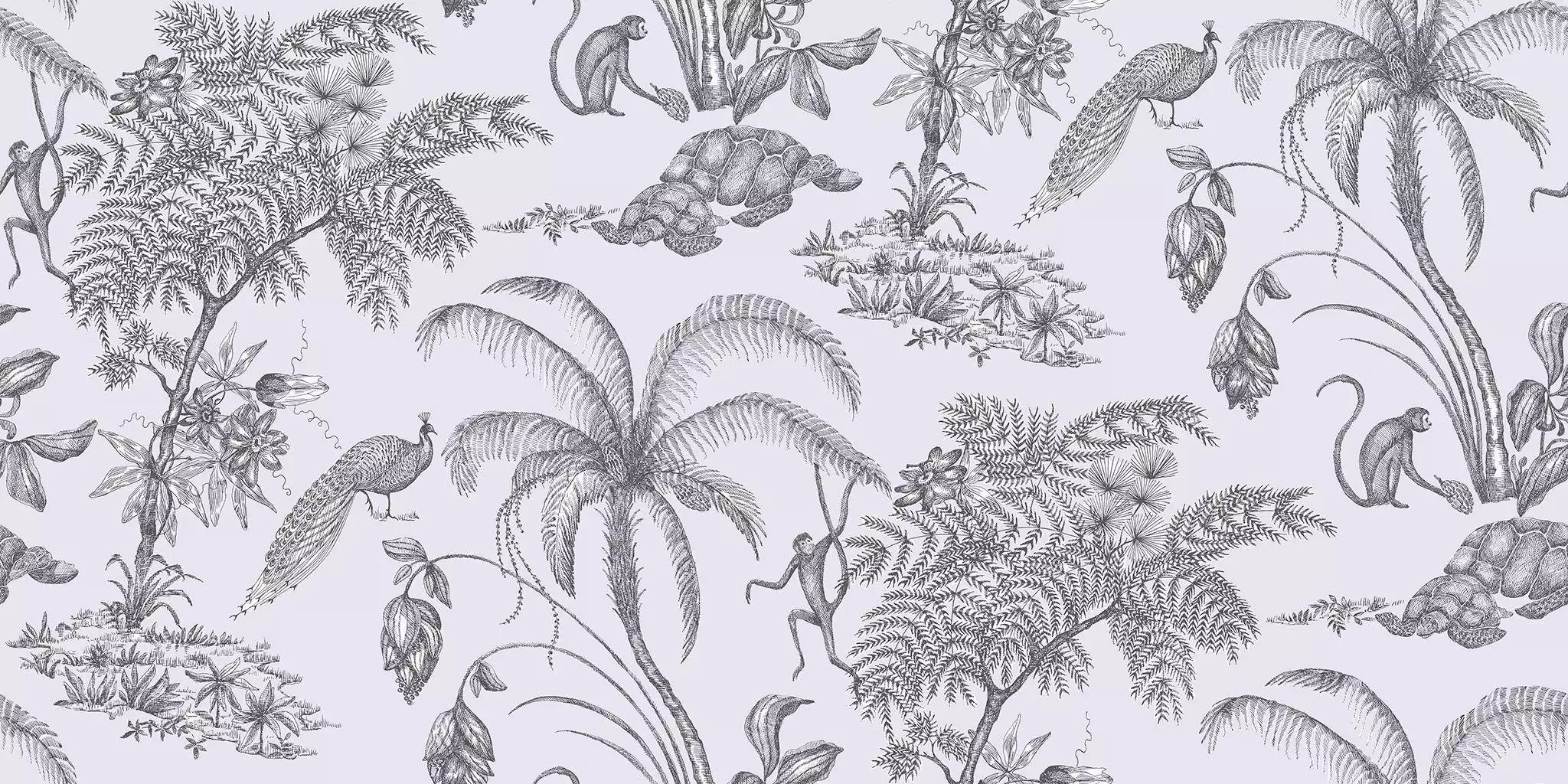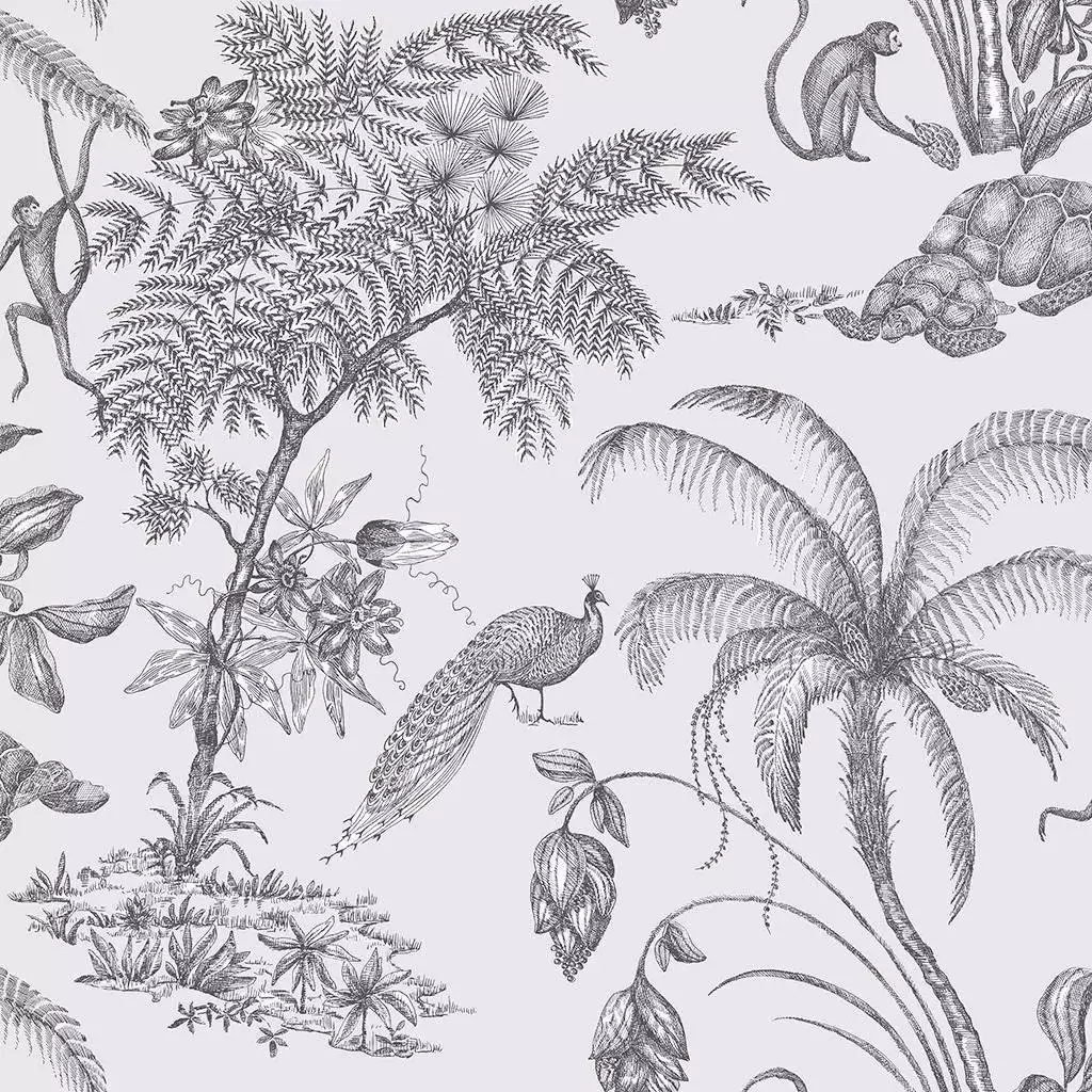 Das Besondere an dieser unkomplizierten Vliestapete ist ihre Gestaltung in Schwarz und Weiß, welche die exotische Atmosphäre des Dschungels völlig ohne Farben perfekt einfängt. Nicht nur für die kleinen Bewohner im Haus ist diese schöne Flora- und Fauna-Tapete ein echtes Schmuckstück. Auch im Wohn- oder Schlafzimmer verbreitet sie ihre ruhige und entspannende Wirkung der unberührten Natur optimal. Geben Sie einem modern eingerichteten Heim mit diesem faszinierenden Muster an der Wand Stil und Wärme.