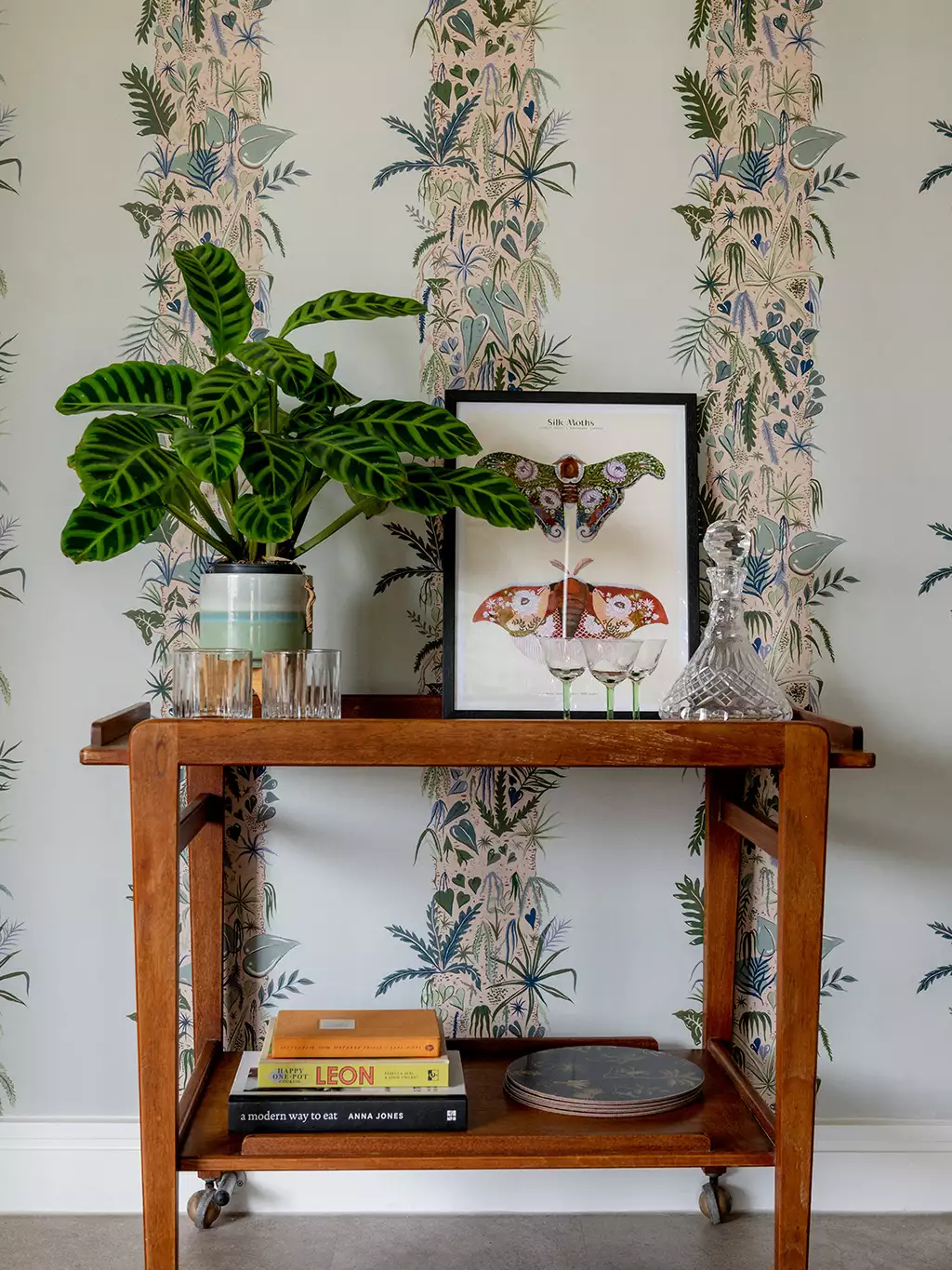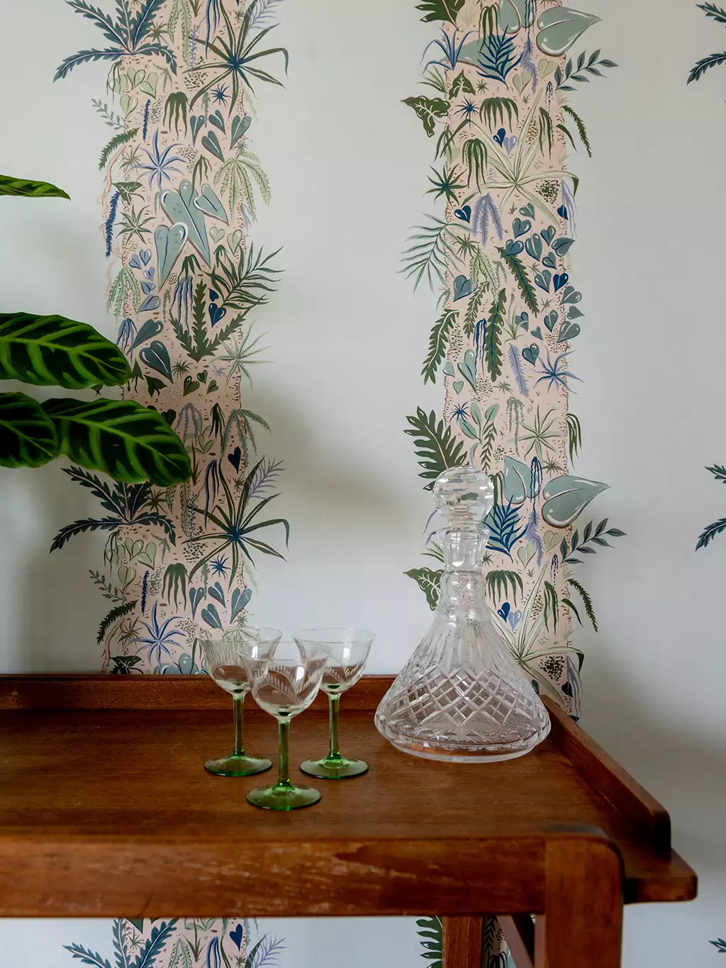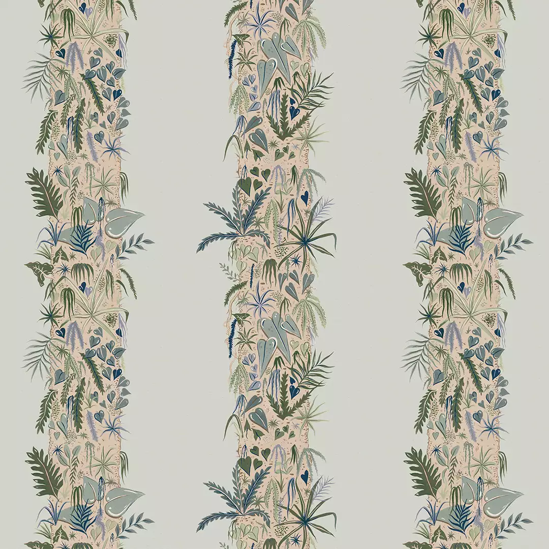 Monte Verde in Duck Egg-Blue ist von Costa Ricas wunderschönem Monte Verde Nebelwald inspiriert. Dieser Tropenwald, eingehüllt in eine konstante Wolkendecke und hohe Luftfeuchtigkeit, schuf ein faszinierendes Ökosystem. Hunderte von kleinen Bäumen bevölkern jeden Baumstamm, was das Design inspirierte. Duck-Egg präsentiert erdige Blau- und Grüntöne auf einem traditionellen grünblauen Hintergrund, eine klassische und anspruchsvolle Palette.