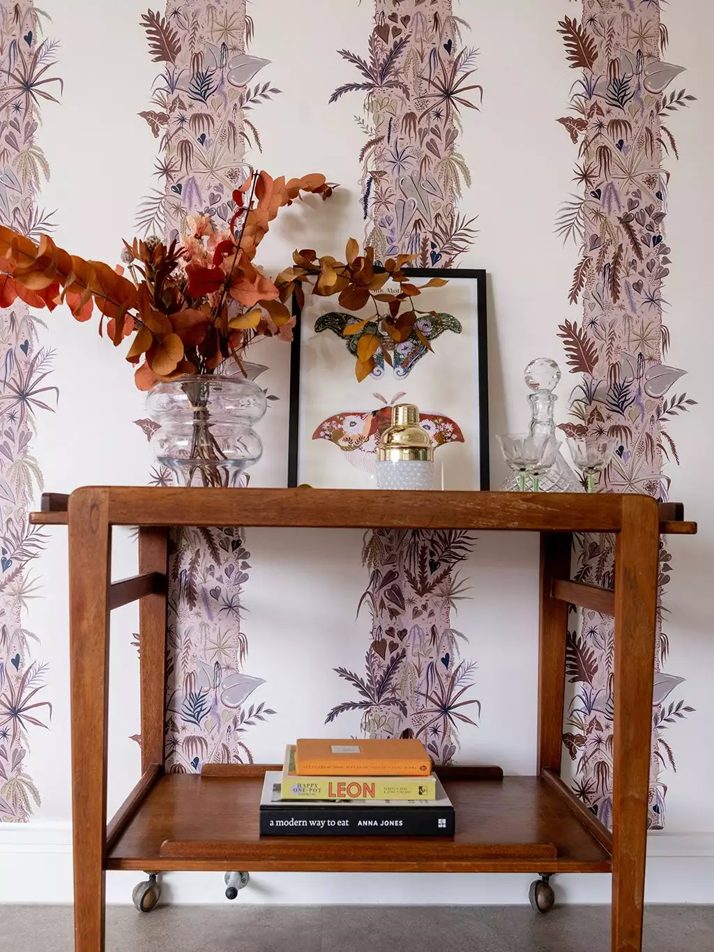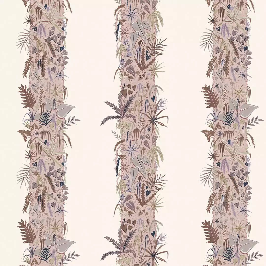 Die Tapete 'Monte Verde' zeigt mit Pflanzen bewachsene Baumstämme, eingetaucht in einen sanften Morganite-Pink.Das Design zieht ihre Inspiration aus dem Nebelwald in Costa Rica. Dort herrscht eine Luftfteuchtigkeit von Nahe zu 100%. Diese feuchte Umgebung ermöglichte die Entstehung von Ökosystemen innerhalb von Ökosystemen, wie dieser Tapete.