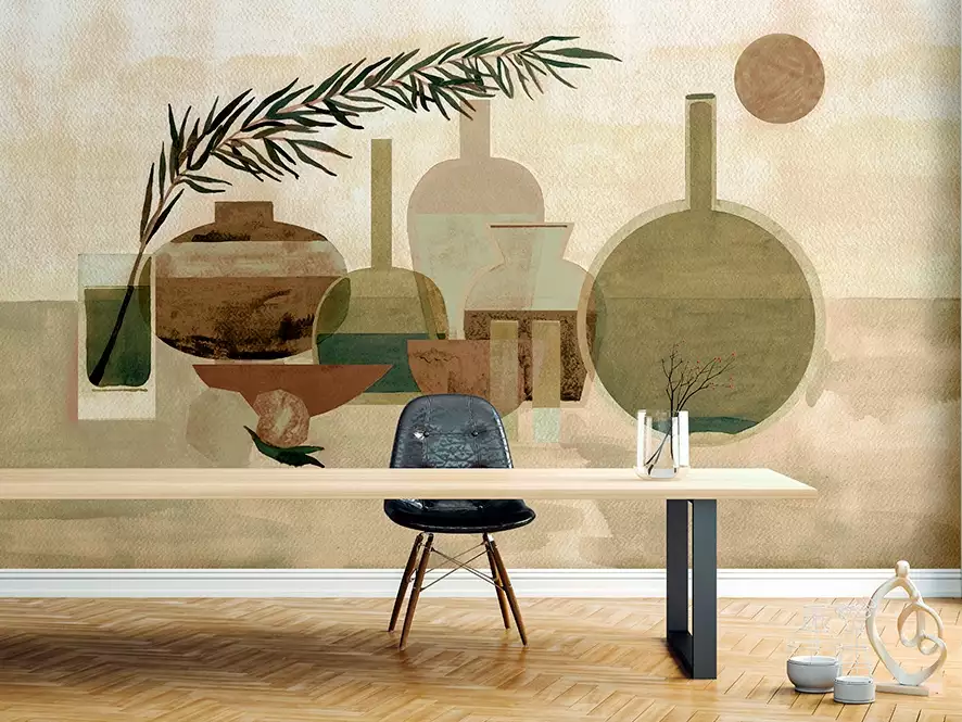 Die Tapete Morandi präsentiert uns ein geometrisches Stilleben, in dem klare Formen und subtile Farben ein zartes Werk bilden, das mitreißt.