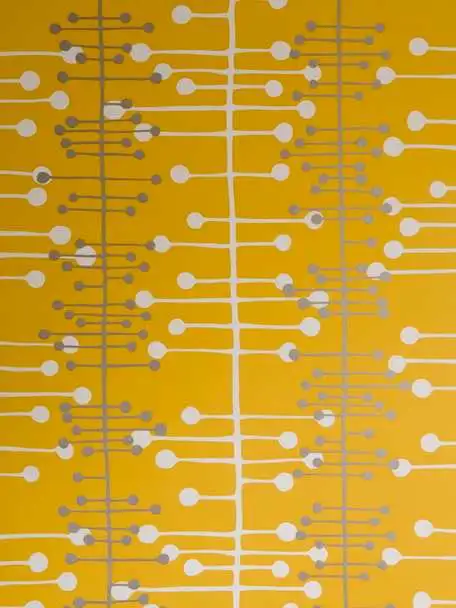 Ursprünglich inspiriert durch das wissenschaftliche Atomdesign der Mid-Century-Zeit, erheben sich abstrakte organische Formen und wachsen aus schlanken vertikalen Stämmen. Mit neuen Farben und Metallic-Akzenten verleiht das Muscat-Design den Wänden mit einer frischen Farbpalette eine subtile Textur und erweckt die alten Formen zu neuem Leben.
