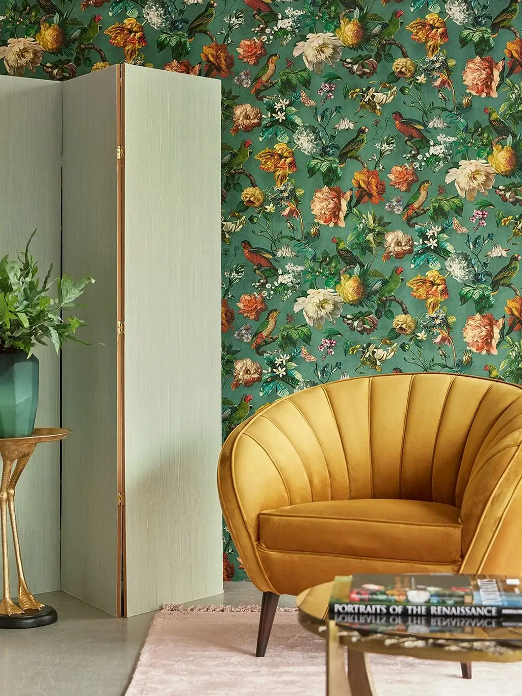 • Großformatige Muster, warme Farben und dezente Metallic-Effekte, die Tiefe und Eleganz schaffen
