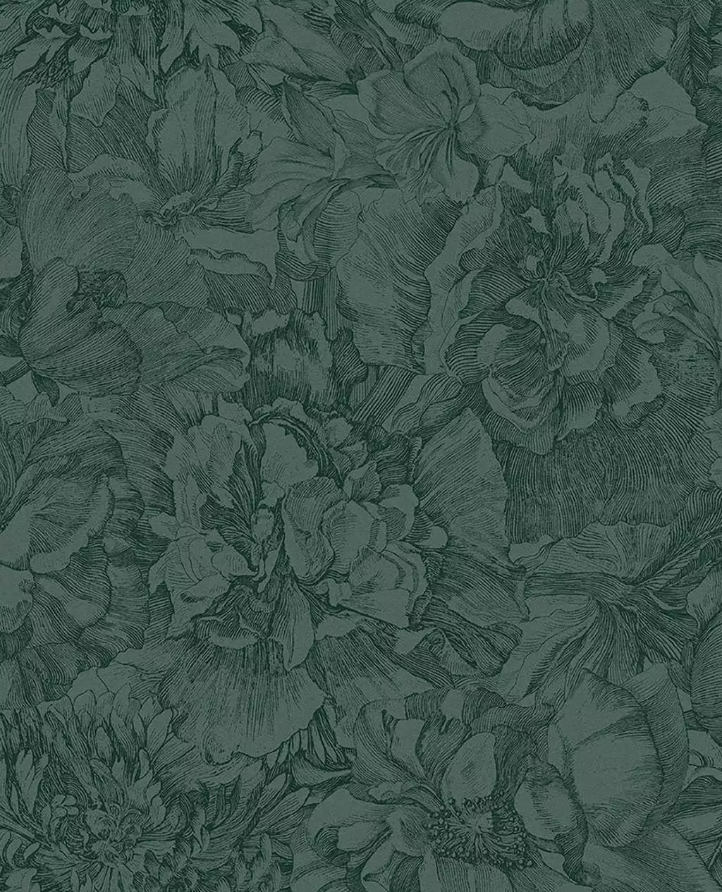 Mit ihrem großflächigen, dunkel grünem Blumenmuster und den fein gezeichneten Rosen und Nelken lässt diese Tapete jede Wand erstrahlen. Das Design ist inspiriert von den Stichen niederländischer Meister und zeugt von höchster Qualität und Handwerkskunst. Durch die Schattierungen erhält die Wand eine unglaubliche Tiefe und wird zum Blickfang in jedem Raum.
