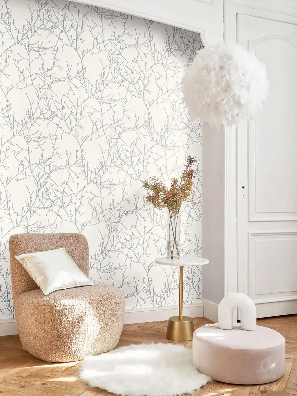 Mythe ist ein wunderschöner Tapetendruck, der eine einzigartige Atmosphäre erzeugt. Der Druck besteht aus verschiedenen Zweigen - das perfekte Design für jeden Raum, der Ruhe und Entspannung vermitteln soll. Die Farben sind angenehm, sodass die Tapete das ganze Jahr über einladend wirkt.