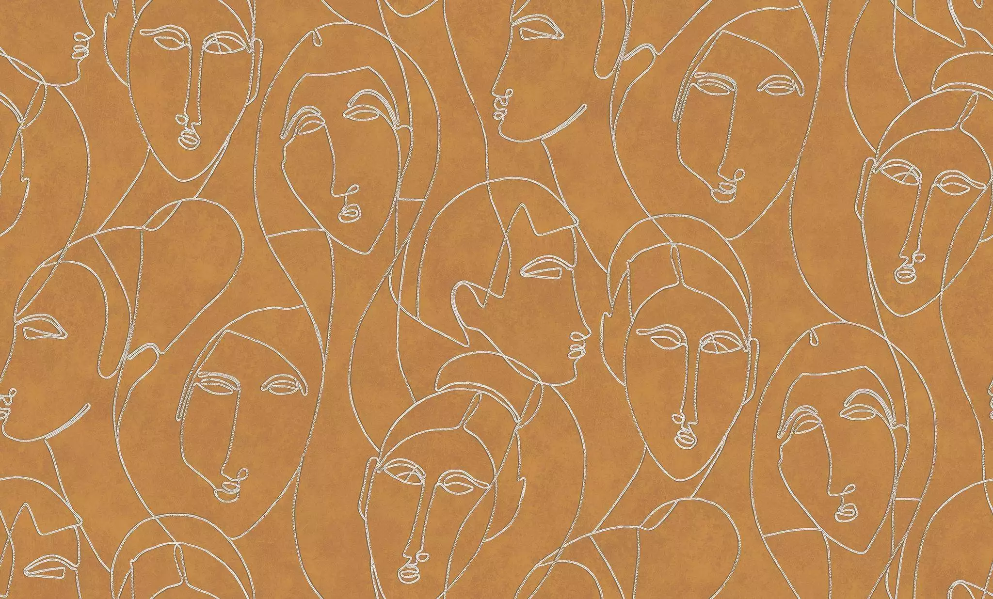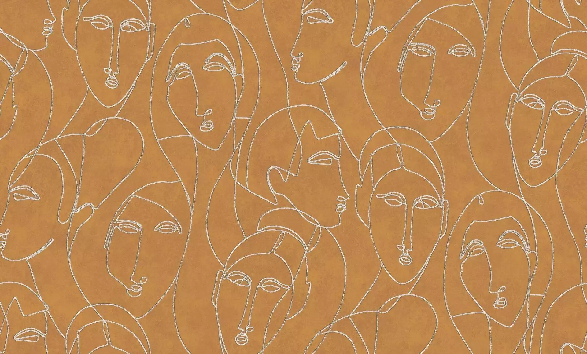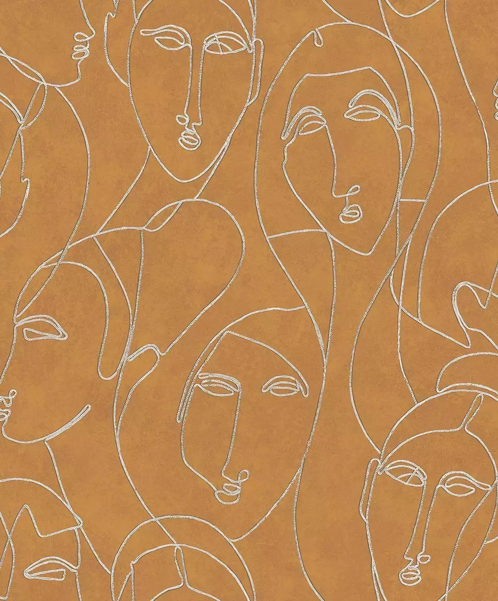 Mit der Tapete Nefertiti Gold gelingt dieser besondere Art-Déco-Moment, der zugleich zeitgemäß wirkt. Die Tapete gehört zur Kollektion Agathe von Masureel, deren Gestaltung spürbar von den 1920er-Jahren inspiriert ist. Von senfgelbem Fond heben sich konturierte Gesichter als Ein-Linien-Zeichnungen ab, klar skizziert, leicht abstrahiert und in einer grafischen Linie gehalten, die an die geometrische Eleganz des Art Déco erinnert. Der feine Silberton bringt Frische ins Motiv und lässt die Linien im Licht zart aufleuchten. Es entsteht eine warme und charakterstarke Atmosphäre: Nefertiti Gold ist eine moderne Interpretation der Epoche, die Räumen ein stilvolles, fast erzählerisches Flair verleiht, und ganz klar eine designstarke Hommage an die 20er Jahre.
