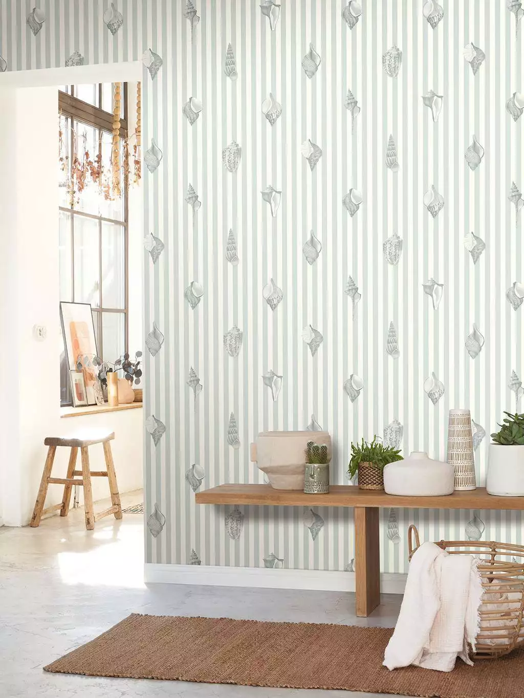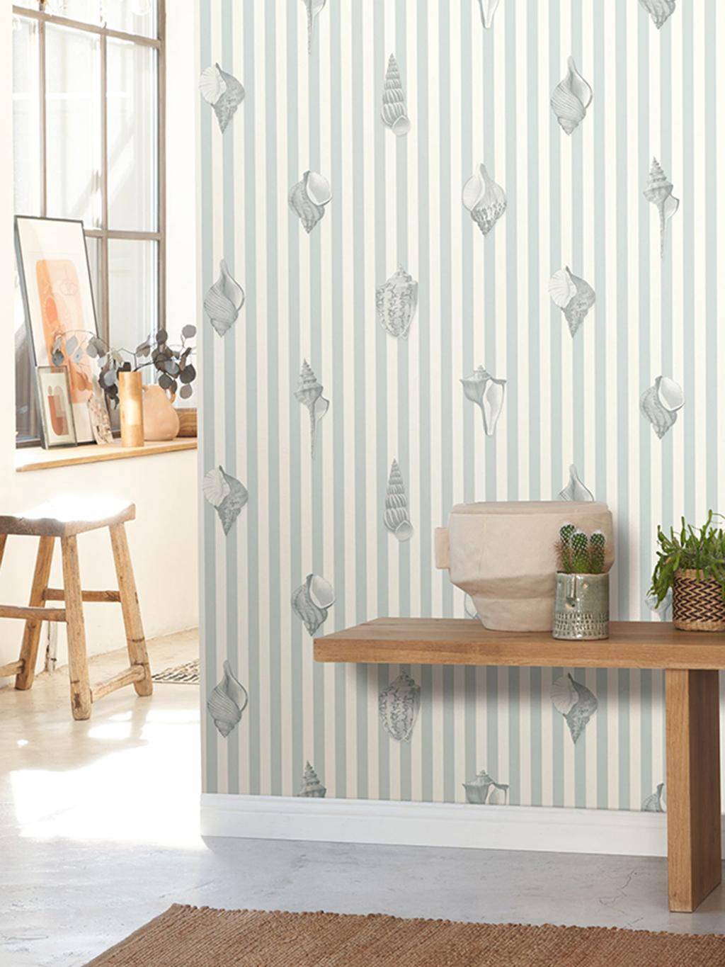 Wie eine leichte Brise, die Geschichten vom Meer erzählt verbindet die Tapete Noirmoutier Bleu horizon filigrane Muschelzeichnungen mit modernen Streifen zu einer Komposition von zeitloser Eleganz. Die zarten Linien und das frische Farbspiel erinnern an klare Morgen am Strand der Île de Noirmoutier, die sanfte Küste mit der ruhigen Seele– still, hell, voller Leichtigkeit und Lebensfreude.