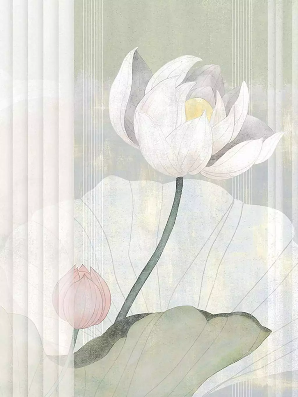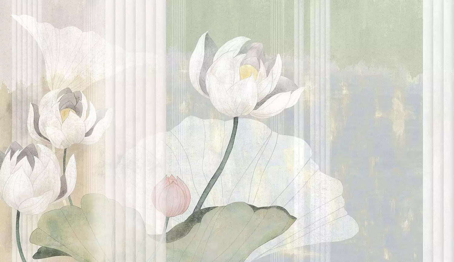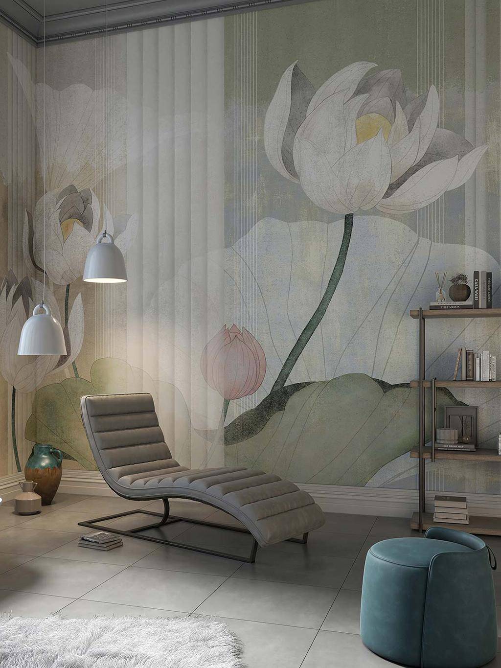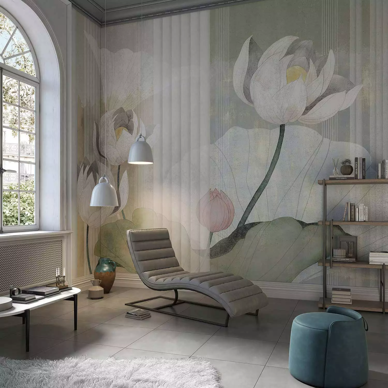 Das Motiv NYMPHEAS von Tecnografica zeigt eine zarte, poetische Darstellung von Lotusblüten in harmonisch abgestimmten Pastelltönen. Die filigranen Linien und sanften Farbverläufe wirken wie eine Tuschezeichnung mit pudrigem Aquarell – inspiriert von fernöstlicher Ästhetik und natürlicher Leichtigkeit. Die vertikalen Akzentlinien im Hintergrund verleihen dem Design eine elegante architektonische Struktur, die den floralen Elementen Raum und Rhythmus gibt. Das Dekor ist vollständig skalierbar – die Abmessungen lassen sich individuell an Ihr Projekt anpassen.