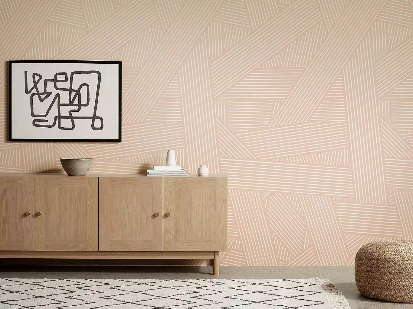 Oblique Apricot bringt grafische Struktur in weiche Balance. Die lineare Komposition basiert auf der Idee fragmentierter Textfelder und wird im Siebdruckverfahren präzise auf breitem Vliespapier umgesetzt. Der sanfte Apricot-Ton wirkt zurückhaltend und zugleich raumöffnend. Er schafft Helligkeit ohne Kälte und unterstützt natürliche Materialien und ruhige Farbkonzepte. Wie alle CUSTHOM-Entwürfe entsteht die Tapete in London, ausschließlich auf Bestellung und auf FSC-zertifiziertem Papier. Oblique – Apricot verbindet reduzierte Geometrie mit feiner Farbstimmung und eignet sich ideal für Räume mit gestalterischem Anspruch.