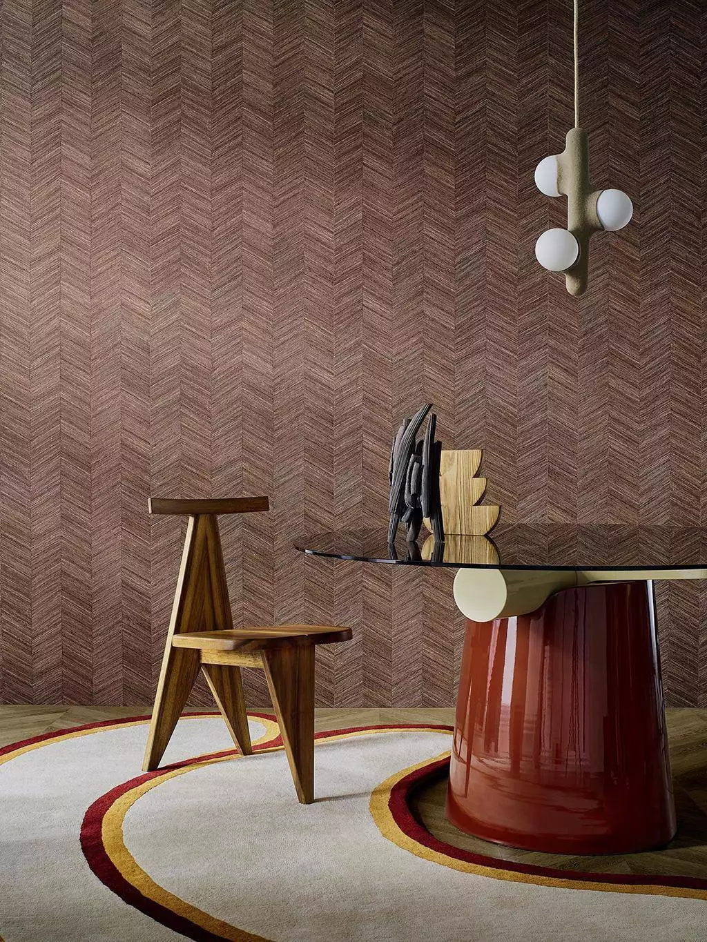 Ocotea bringt die Wärme und Struktur edler Hölzer auf die Wand. Das präzise gearbeitete Chevron-Muster erinnert an handverlegte Holzstäbchen aus Roter Zeder und entfaltet durch eine sorgfältig abgestimmte Textur eine verblüffend natürliche Wirkung. Die Tapete aus der Kollektion Nature sur Mesure überzeugt mit Tiefe und einem authentischen Materialcharakter – inspiriert von der madagassischen Ocotea, einem duftenden, hochwertigen Holz. Auf breitem Vlies kombiniert dieses Design Handwerkskunst mit einer ruhigen, naturverbundenen Ästhetik. Die nuancierten Farbtöne unterstreichen den organischen Eindruck und schaffen eine behutsam strukturierte Oberfläche.